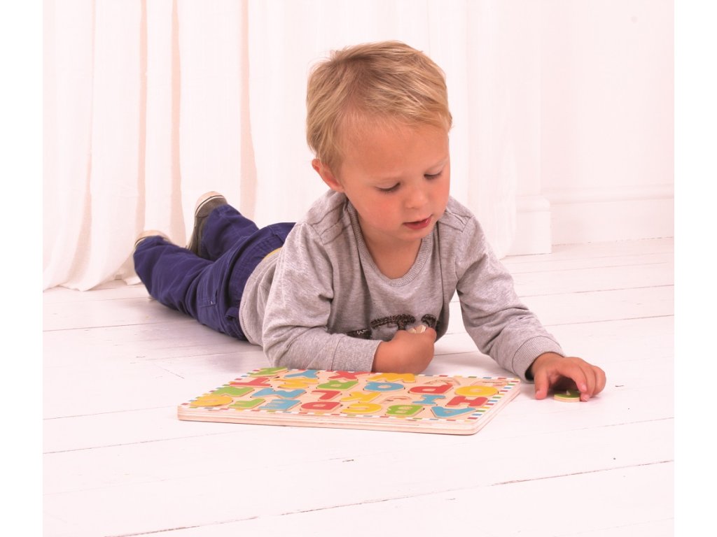 Tato neuvěřitelně jednoduchá dřevěná deska pomáhá dětem dozvědět se o tvaru písmen a jejich psaní ve správném pořadí s lehkostí! Každé písmeno abecedy je zapuštěno do základní desky. Uvnitř každého písmena jsou obrázky zvířat začínající na dané písmeno. Hračka pomáhá rozvíjet obratnost a koncentraci. Vyrobeno z vysoce kvalitní, zodpovědně nakupovaných materiálů. Splňuje platné evropské bezpečnostní normy. Hlavní vlastnosti: pomáhá rozvíjet obratnost, koncentraci a komunikační dovednostivyrobeno z vysoce kvalitních materiálůvyhovuje současným evropským bezpečnostním normám