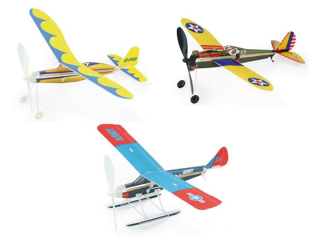 Cena za 1 ks. Letadla s natahovací vrtulí – dá se natáhnout gumičkou. Na výběr ze 3 typů letadel, např. Boeing P-26 nebo Beaver. Hlavní vlastnosti: lehký materiálnatahování na gumičku