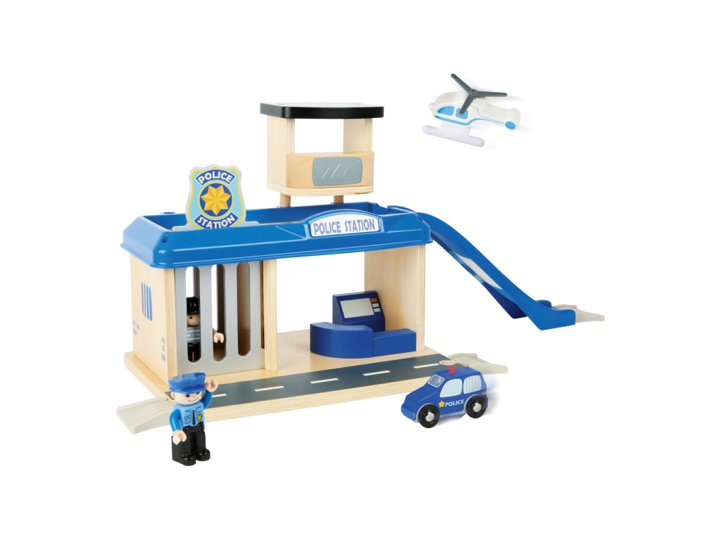 Žádný dareba už neunikne spravedlnosti! S policejní stanicí mohou děti rozehrát fantastická dobrodružství, mezi příslušenstvím je jim totiž k dispozici jak policejní autíčko a vrtulník, tak i pohyblivá figurka policisty a zločince. Stanice nabízí dvě podlaží a věž s heliportem. V přízemí naleznete celu s výsuvnou mříží a v patře lze s využitím nájezdové rampy zaparkovat. Díky kombinaci silné překližky a robustních plastových dílů může hračka nabídnout vysokou odolnost a životnost. Dřevo použité při její výrobě bylo získáno z udržitelných zdrojů a nese certifikaci FSC®. Lze ji rozšířit množstvím příslušenství a je také plně kompatibilní s vláčkodráhami jiných velkých výrobců. Hlavní vlastnosti:stanice, 2 díly interiérového vybavení, autíčko, helikoptéra a 2 figurky2 podlaží s věží, rampa a cela s výsuvnou mřížírobustní a odolné provedeníkompatibilní i s vláčkodráhami dalších výrobcůvyrobeno s použitím 100% FSC® dřeva Značka a certifikát FSC® (Forest Stewardship Council) zaručuje, že dřevo, ze kterého byl produkt vyroben, nebylo vytěženo nelegálně a pochází z lesů obhospodařovaných šetrným či přírodě blízkým způsobem, ve kterém jsou dodržovány přísné environmentální a sociální požadavky. Značka FSC® na výrobku znamená, že svým nákupem pomáháte chránit lesy a podporujete šetrné, odpovědné či přírodě blízké hospodaření, díky kterému jsou naše lesy stabilnější, zdravější, mají přirozenou druhovou skladbu a lépe odolávají negativním následkům klimatických změn.