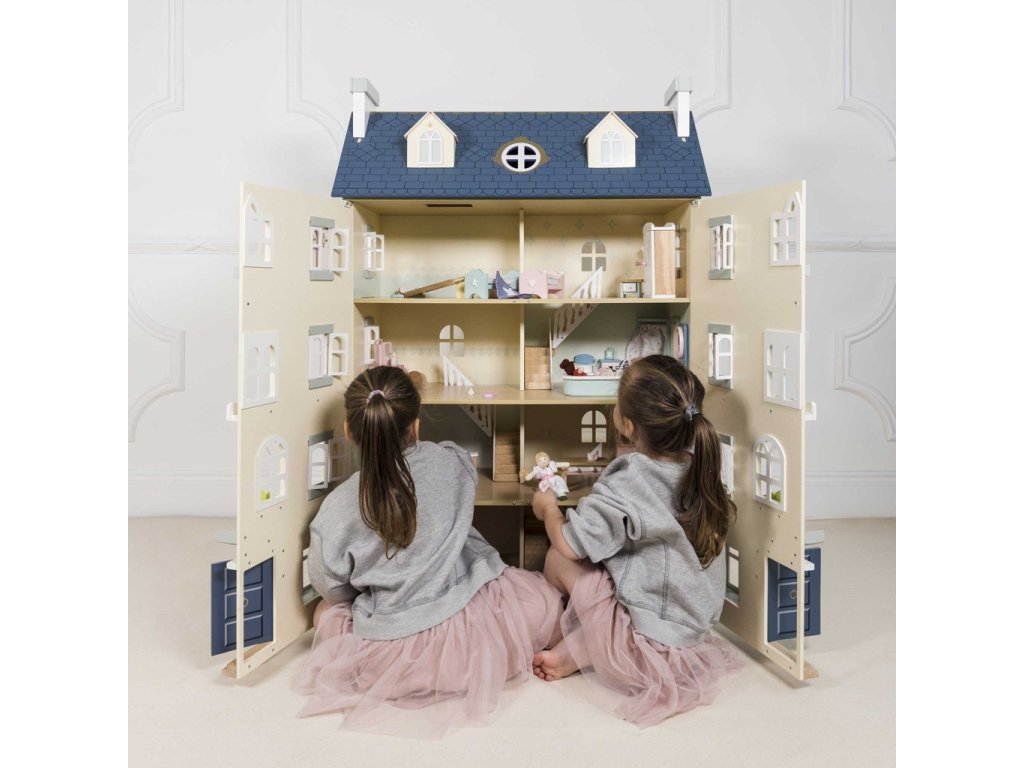 Právě jste dostali pozvánku do paláce! Tento luxusní domeček je hodný vaší královské výsosti. Velký palác pro prince a princezny je jako ze sna, je připraven na malá i velká dobrodružství. Jistě rozzáří každý dětský pokojík.Uveďte děti do magického světa představivosti, vysoký domeček s pěti patry je malován v neutrálních tónech, detaily jsou zlaté. Na každé straně najdete mnoho oken, některá z nich jsou otevíratelná, stejně jako nádherné vstupní dveře v královské modři. Všech osm pokojů má na stěnách elegantní dekorace, velké schodiště sahá až do čtvrtého patra a najdete na něm krásné tradiční zdobení.Oddělitelná střecha odhalí prostornou půdu, na kterou se dostanete za pomoci žebříku. Rodinka se v ní může zabydlet nebo ji využít jako úložný prostor. Záleží pouze na vaší představivosti.Výjimečná hračka plná radosti a nostalgie, s kterou si děti užijí mnoho let magické hry. Domeček si můžete předávat z generace na generaci.Všechny domy pro panenky od Le Toy Van byly navrženy týmem z Velké Británie, vyrobeny byly za užití etických praktik a udržitelných materiálů.Domeček můžete dovybavit dřevěným nábytkem, panenkami a jinými doplňky z kolekce Daisylane. Hračky s účelemVšechny hračky firmy Le Toy Van jsou vyrobeny s cílem – aby dlouho vydržely. Designovány s láskou zkušenými řemeslníky za použití etických praktik a udržitelných materiálů, které jsou laskavější k naší planetě. Hlavní vlastnosti: vyrobeno eticky z udržitelného dřevatestováno dle nejpřísnějších standardůmalováno netoxickými barvami na bázi vodynábytek a panenky nejsou součástí baleníinspiruje k představivé a dlouhotrvající hřeasistuje v rozvoji koordinace ruka-okogenderově neutrální designpo rozbalení nutno složit dle návodu Ocenění hračky:Junior Design Silver Award 2019 Daisylane kolekce: Prestižní kolekce domečků pro panenky a doplňků firmy Le Toy Van. Před více než 25 lety zakladatel Georges navrhl svůj úplně první domeček pro panenky, stavební kámen této firmy. Vyrobeno eticky z udržitelných materiálů, dřevěné domečky pro panenky Daisylane jsou jedinečné a nebudou dětskou představivost držet zpátky. Rodinné dědictví, opravdová investice do hraní.