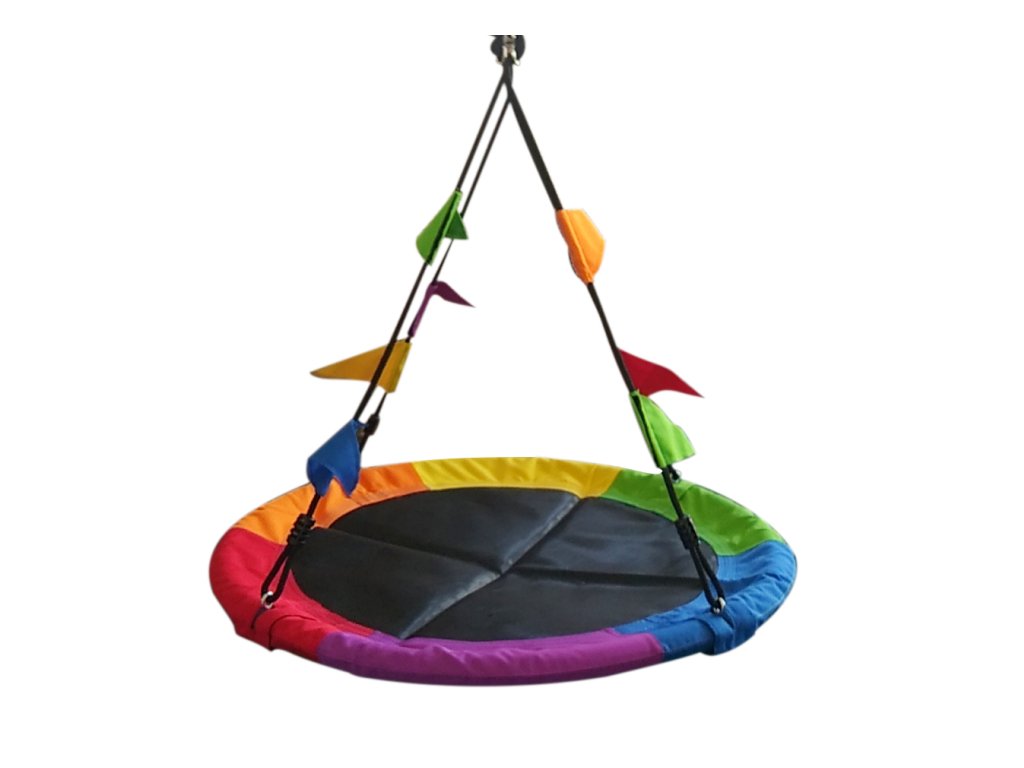 Houpačka Čapí hnízdo s barevnými vlajkami z pevného materiálu s 2 karabinami pro zavěšení. Nezbytný pomocník pro objevitele venkovní zábavy na moderním dětském hřišti. Hlavní vlastnosti: nosnost 150 kgpevný a odolný materiálkonstrukce z trubky o síle 2,5x0,1 cm