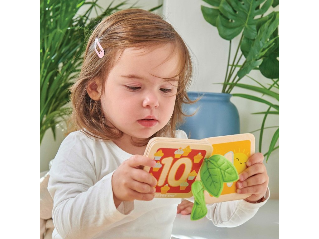 Děti se s touto pěknou dřevěnou knížkou naučí počítat, je to perfektní hračka, která malé děti zaujme a zabaví. Má roztomilé ilustrace, díky kterým se děti naučí počítat od 1 do 10. Každá stránka je v jiné tematice, v knize najdete včelky, kuřátka, berušky… Hračka děti podpoří v rozvoji řeči a rozpoznávání čísel. Je vyrobena z odolného a udržitelného kaučukového dřeva, malována barvami na bázi vody, vázání je z ručně šitých plstěných lístků. Hračky s účelemVšechny hračky firmy Le Toy Van jsou vyrobeny s cílem – aby dlouho vydržely. Designovány s láskou zkušenými řemeslníky za použití etických praktik a udržitelných materiálů, které jsou laskavější k naší planetě. Hlavní vlastnosti: vyrobeno eticky z udržitelného dřevatestováno dle nejpřísnějších standardůmalováno netoxickými barvami na bázi vodyinspiruje k představivé hřerozvíjí kognitivní dovednostihračka bez obsahu plastu Petilou kolekce: Kolekce pro nemluvňata a batolata od Le Toy Van obsahuje hlavně hmatové hračky, které mají nejmenším posloužit také jako učební prostředky. Kolekce je inspirována přírodou kolem nás a je navržena tak, aby rozvíjela smysly dětí pomocí rozdílných zvuků, textur, tvarů a hmotností. Děti tak od malička zapojí všechny své smysly. V kolekci najdete například skládačky, vkládačky, chodítka, …