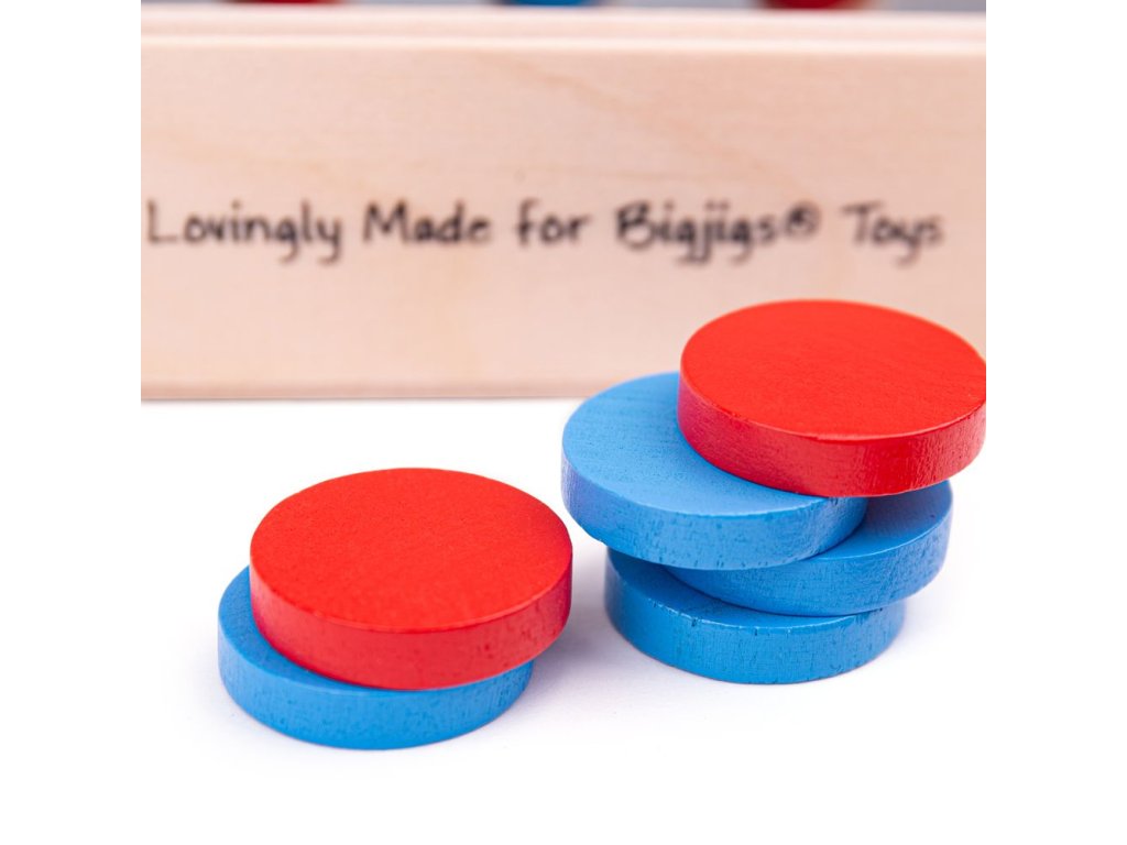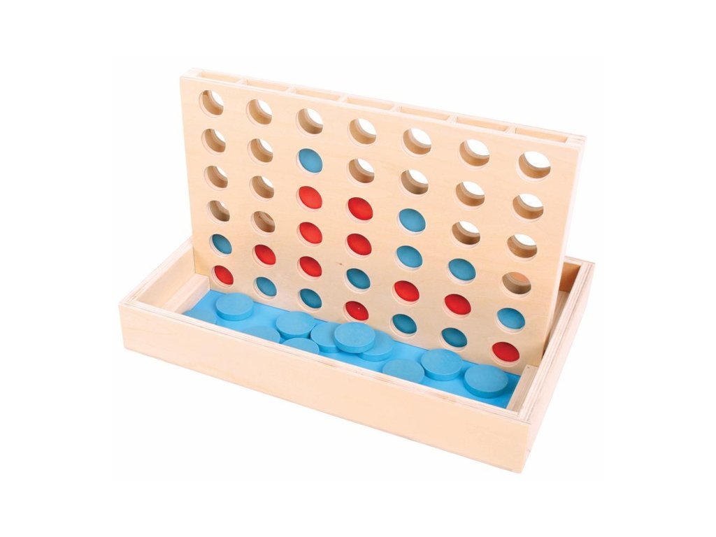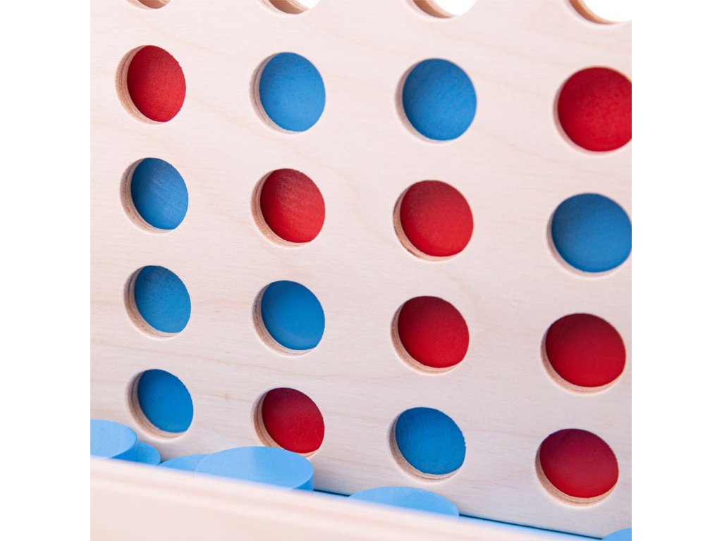 Čtyři v rovině je klasická strategická hra pro dva hráče. Zabaví děti na hodiny, když se snaží porazit svého soupeře. Jak vyhrát čtyři v řadě? Hráč, který jako první umístí 4 žetony horizontálně, vertikálně nebo diagonálně, vyhrává hru. Současně musí hráč v tomto cíli také zabránit soupeři.Čtyři v řadě pomáhají dětem rozvíjet schopnosti logického myšlení a jemnou motoriku , když umísťují své žetony do různých slotů - vertikálně, horizontálně nebo diagonálně. Jednoduchá, ale účinná soutěžní desková hra .Čtyři v řadě je vyrobeno z kvalitních , odpovědně ze zdrojů materiálů. Pulty jsou potaženy netoxickými barvami a laky. Splňuje aktuální evropské bezpečnostní normy. Hlavní vlastnosti: klasická dřevěná desková hraurčeno pro 2 hráčeobsahuje červené a modré žetony