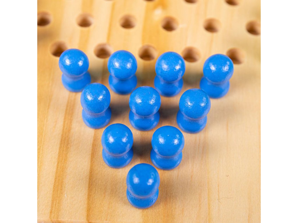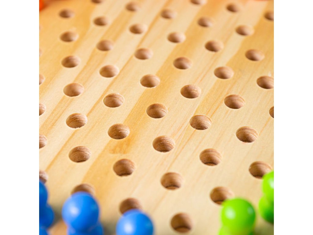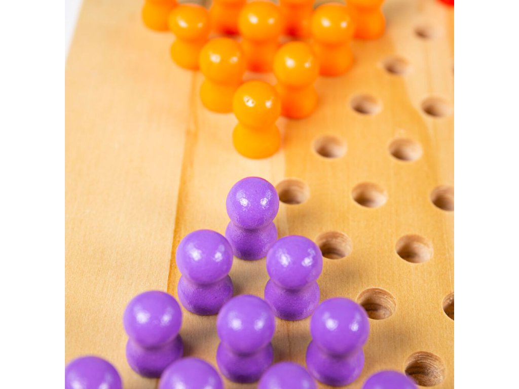 Poškozený obal. Nové zboží bez závad. Kdo přemístí své kolíčky na opačnou stranu herní desky dříve? Tradiční hra v atraktivním dřevěném provedení může pomoci rozvíjet logiku, soustředění i jemnou motoriku. Pestrými barvami ihned zaujme dětskou pozornost a na dotek příjemný přírodní materiál pomáhá stimulovat i hmat. Vyrobeno z kvalitních, odpovědně získaných surovin. Hlavní vlastnosti: hrací deska a 60 figurekpro 2–6 hráčůatraktivní dřevěné zpracování