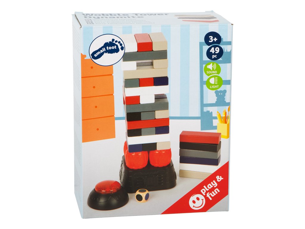 Extrémní vratká věž! Rychlost je v této velmi důležitá. Každý hráč hodí barvou a poté vytáhne odpovídající kámen z vratké věže, zatímco časovač odpočítává. Ale pozor: Jakmile vyprší čas a bzučák nestisknete včas, základna začne vibrovat a věž se převrhne. Úroveň obtížnosti lze měnit dvěma různými nastaveními odpočítávacího časovače. Lze také hrát jako klasická vratká věž bez podstavce a časovače!Vzrušení, zábava a akce pro malé i velké! Hlavní vlastnosti: Trénuje jemnou motoriku a koncentraci2 varianty obtížnosti