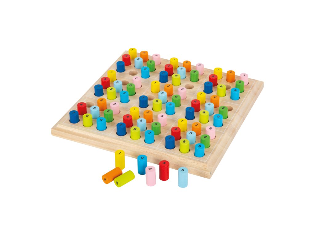 Světoznámá hra s čísly Sudoku. Všechny barevné dřevěné válečky jsou uspořádány v dřevěnému rámu. Hlavní vlastnosti: atraktivní barevné provedenírám zajištuje stabilitupomáhá rozvíjet logické myšlení a soustředěnost dětí