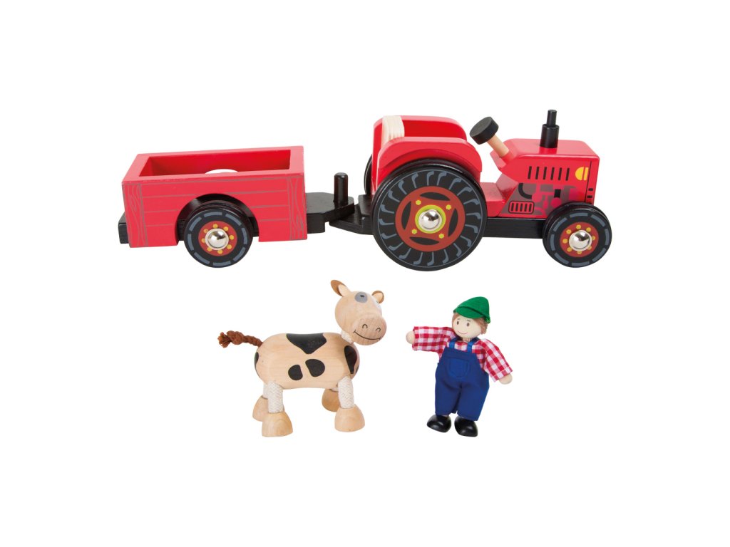 Farmář a jeho kráva se vydávají traktorem na nedaleké pole. Jelikož figurky hýbou rukama i nohama, bude rozehrání poutavého příběhu jednoduché. Pogumovaná kola traktoru zajišťují tichou jízdu po podlaze. Hlavní vlastnosti: odnímatelná vlečkapogumované pneumatiky pro tichou jízdupomáhá s rozvojem představivosti, řeči a sociálních dovedností