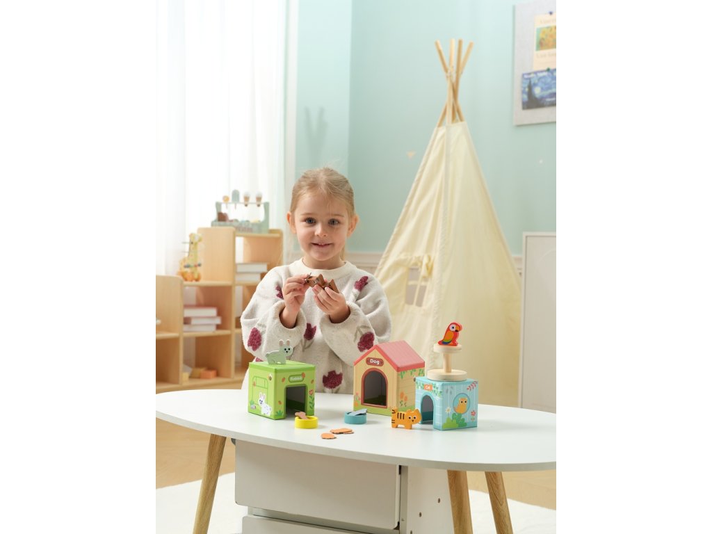 Užijte si spoustu zábavy se svými dřevěnými mazlíčky! Pes, kočka i králíček mají každý svůj domeček i jídlo a z bidýlka na ně dohlíží papoušek. Při hraní si dětí procvičují jemnou motoriku, sociální dovednosti a koordinaci ruka-oko. Tato hravá barevná sada podněcuje k nápadité hře. Dává dětem možnost se naučit, jak zvířátka žijí a jak se o ně správně postarat. Vyrobeno ze dřeva s certikací FSC. Hlavní vlastnosti: kompaktní, skladné provedenírozvíjí motoriku a představivosttvoří vztah k zvířatům a přírodě Značka a certifikát FSC® (Forest Stewardship Council) zaručuje, že dřevo, ze kterého byl produkt vyroben, nebylo vytěženo nelegálně a pochází z lesů obhospodařovaných šetrným či přírodě blízkým způsobem, ve kterém jsou dodržovány přísné environmentální a sociální požadavky. Značka FSC® na výrobku znamená, že svým nákupem pomáháte chránit lesy a podporujete šetrné, odpovědné či přírodě blízké hospodaření, díky kterému jsou naše lesy stabilnější, zdravější, mají přirozenou druhovou skladbu a lépe odolávají negativním následkům klimatických změn.