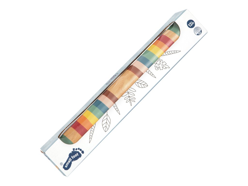 Kdo slyší déšť? S touto dešťovou hůlkou vyrobenou ze dřeva mohou děti kdykoli napodobit zvuk deště nebo poslouchat jemné šumění vody. Pohyb dešťové hůlky vytváří příjemný, rovnoměrný zvuk, který připomíná tekoucí vodu nebo šumění dešťových kapek. Zatímco v Jižní Americe chtěli medicinmani zvukem dešťové hůlky nalákat vytoužený déšť, tak u nás si fascinující, příjemný zvuk s uklidňujícím účinkem užívají především děti. Má ale i všestranné použití jako chrastítko, rytmický nástroj, zvuková hračka nebo uklidňující smyslová hra. Smyslová hračka trénuje nejen akustické vnímání, ale díky modernímu barevnému provedení je také opravdovým poutačem do dětského pokoje. Hlavní vlastnosti: dešťová hůl z robustního dřevalze použít jako chrastítko, rytmický nástroj, zvukovou hračku nebo uklidňující senzorickou hruvhodné i pro nejmenší dětipodporuje rozvoj akustického a zrakového vnímáníkvalitní potisk, moderní barevné schéma, mnoho přírodního dřevapříjemná haptika