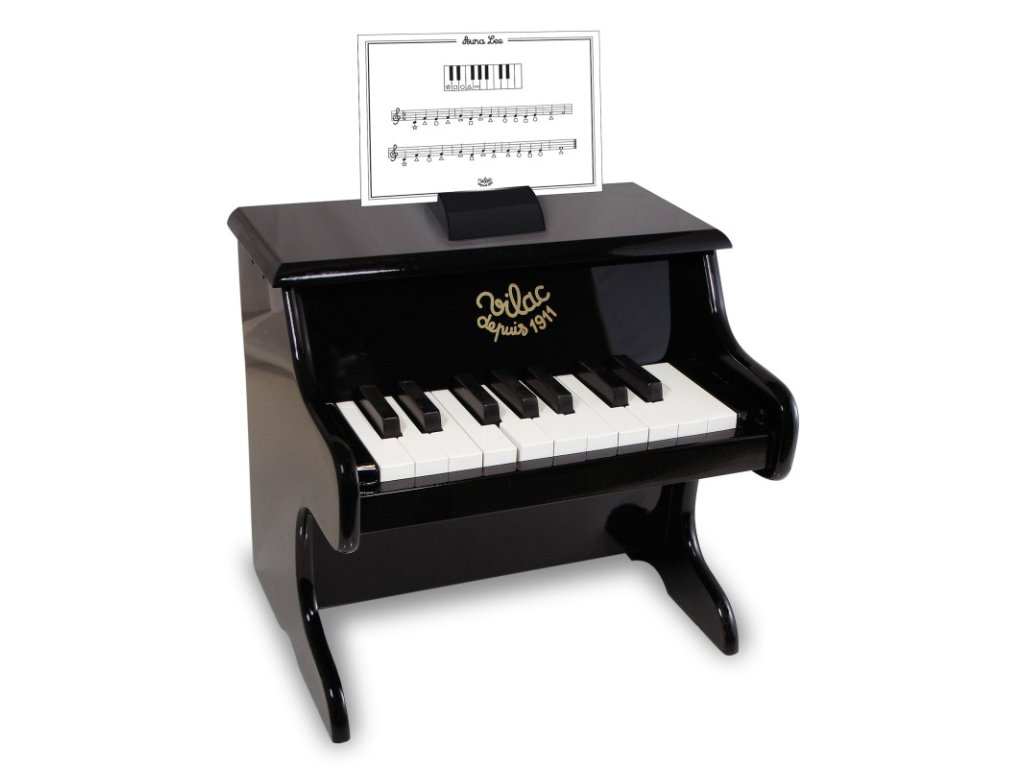 Poškozený obal. Nové zboží bez závad. Krásný dřevěný klavír s 18 klávesami. Součástí balení je deset stránek not, děti se tak mohou naučit hrát některé z melodií. Nejedná se o hudební nástroj, ale hračku. Hlavní vlastnosti: ideální pro první hranípodporuje hudební talent