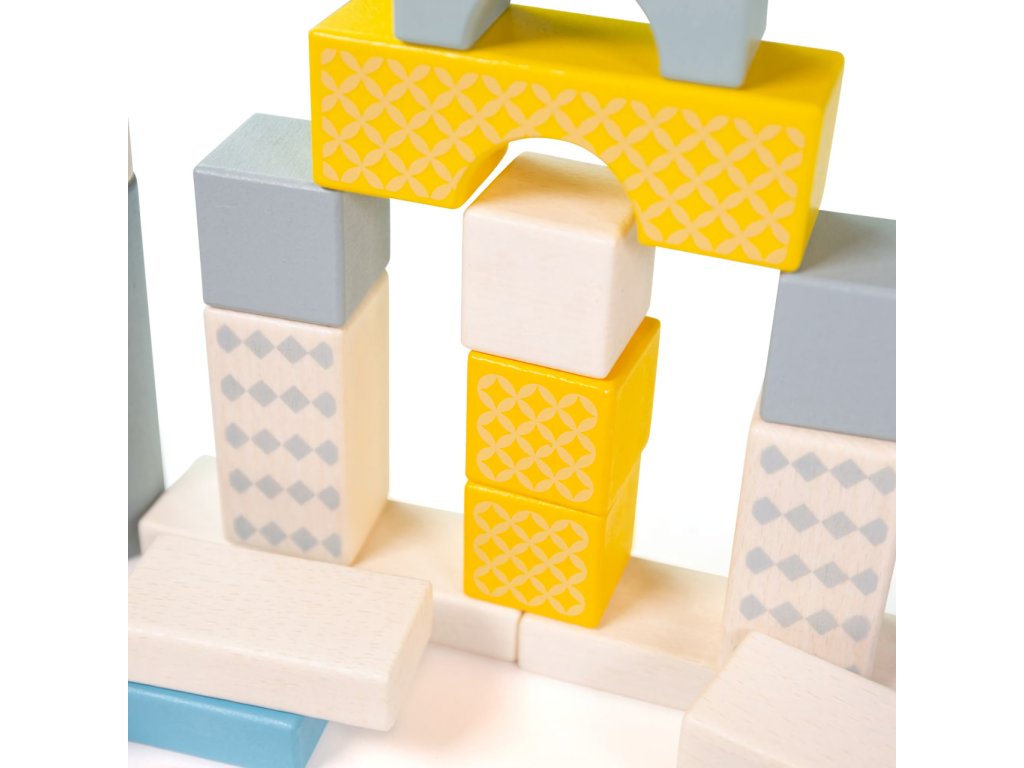 Sada kostek je přehlídkou tvarů, vzorů a barev, které mohou pomoci stimulovat dětské smysly a fantazii k budování rozmanitých staveb. Kostky jsou velikostí přizpůsobeny malým dětským ručkám, a usnadňují tak přirozený rozvoj soustředění a jemné motoriky. Díky zaobleným hranám a hladké povrchové úpravě je manipulace s nimi bezpečná a příjemná. Jsou vyrobeny z nejkvalitnějšího certifikovaného, odpovědně získaného dřeva z udržitelných zdrojů a ošetřeny nezávadnými barvami i laky. Hlavní vlastnosti: kyblík a 50 kostekvelikost vhodná pro nejmenší dětivyrobeno ze 100% FSC® dřeva Značka a certifikát FSC® (Forest Stewardship Council) zaručuje, že dřevo, ze kterého byl produkt vyroben, nebylo vytěženo nelegálně a pochází z lesů obhospodařovaných šetrným či přírodě blízkým způsobem, ve kterém jsou dodržovány přísné environmentální a sociální požadavky. Značka FSC® na výrobku znamená, že svým nákupem pomáháte chránit lesy a podporujete šetrné, odpovědné či přírodě blízké hospodaření, díky kterému jsou naše lesy stabilnější, zdravější, mají přirozenou druhovou skladbu a lépe odolávají negativním následkům klimatických změn.