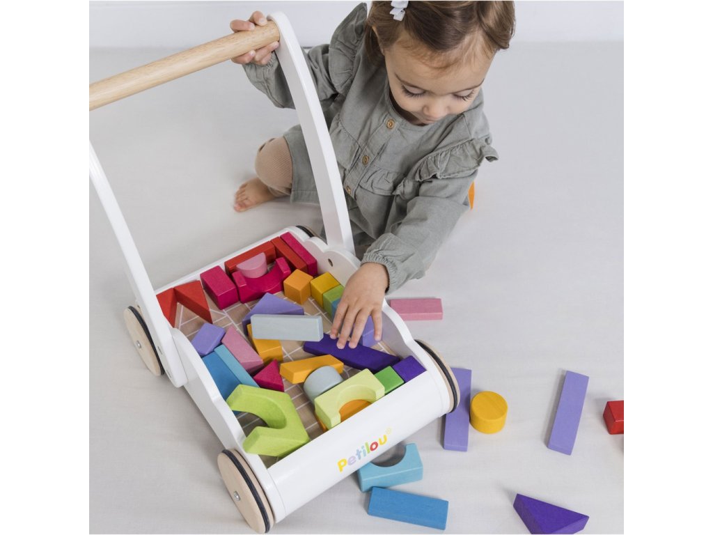 Perfektní hračka pro batolata, která se učí chodit. Unikátní chodítko ve tvaru mráčku je vybaveno 45 kostkami z kaučukového dřeva, ty jsou malovány barvami duhy. Vozík jako chodítko děti podpoří fyzicky i mentálně. Při tréninku chůze dodá sebejistotu a stabilitu. Tradiční duhové kostky různých tvarů zase pomohou s rozvojem prostorové představivosti, zručnosti a motoriky. Hračky s účelemVšechny hračky firmy Le Toy Van jsou vyrobeny s cílem – aby dlouho vydržely. Designovány s láskou zkušenými řemeslníky za použití etických praktik a udržitelných materiálů, které jsou laskavější k naší planetě. Hlavní vlastnosti: chodítko s 45 kostkamivyrobeno eticky z udržitelného dřevatestováno dle nejpřísnějších standardůmalováno netoxickými barvami na bázi vodyinspiruje k představivé hřerozvíjí kognitivní dovednosti Ocenění hračky:Good Toy Guide RecommendedJunior Design Silver Award 2018 Petilou kolekce: Kolekce pro nemluvňata a batolata od Le Toy Van obsahuje hlavně hmatové hračky, které mají nejmenším posloužit také jako učební prostředky. Kolekce je inspirována přírodou kolem nás a je navržena tak, aby rozvíjela smysly dětí pomocí rozdílných zvuků, textur, tvarů a hmotností. Děti tak od malička zapojí všechny své smysly. V kolekci najdete například skládačky, vkládačky, chodítka, …