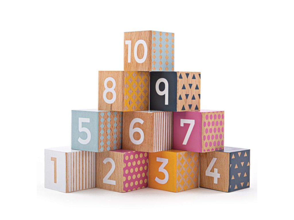 Výuka počtů a číslic může být zábava! 1, 2, 3, představte dětem svět čísel s těmito krásnými kostkami z FSC® dřeva. Tyto lehké a barevné kostky s čísly mají krásný design, v kterém se snoubí přírodní dřevo s barevným lakováním. Zabaví nejen dětské ručky, ale i oči.Vyrobeno z FSC® certifikovaných materiálů, tyto číslované kostky jsou vyrobeny z vysoce kvalitního a udržitelného dřeva.Kostky jsou velké tak akorát pro dětské ruce, robustní a hladké dřevo je dost odolné i proti pádům, zároveň ale dokáže ochránit před třískami. Hlavní vlasnosti: 10 číslovaných kostekpestré barvy, různé vzory100% FSC® dřevobarvy bezpečné pro děti Značka a certifikát FSC® (Forest Stewardship Council) zaručuje, že dřevo, ze kterého byl produkt vyroben, nebylo vytěženo nelegálně a pochází z lesů obhospodařovaných šetrným či přírodě blízkým způsobem, ve kterém jsou dodržovány přísné environmentální a sociální požadavky. Značka FSC® na výrobku znamená, že svým nákupem pomáháte chránit lesy a podporujete šetrné, odpovědné či přírodě blízké hospodaření, díky kterému jsou naše lesy stabilnější, zdravější, mají přirozenou druhovou skladbu a lépe odolávají negativním následkům klimatických změn.