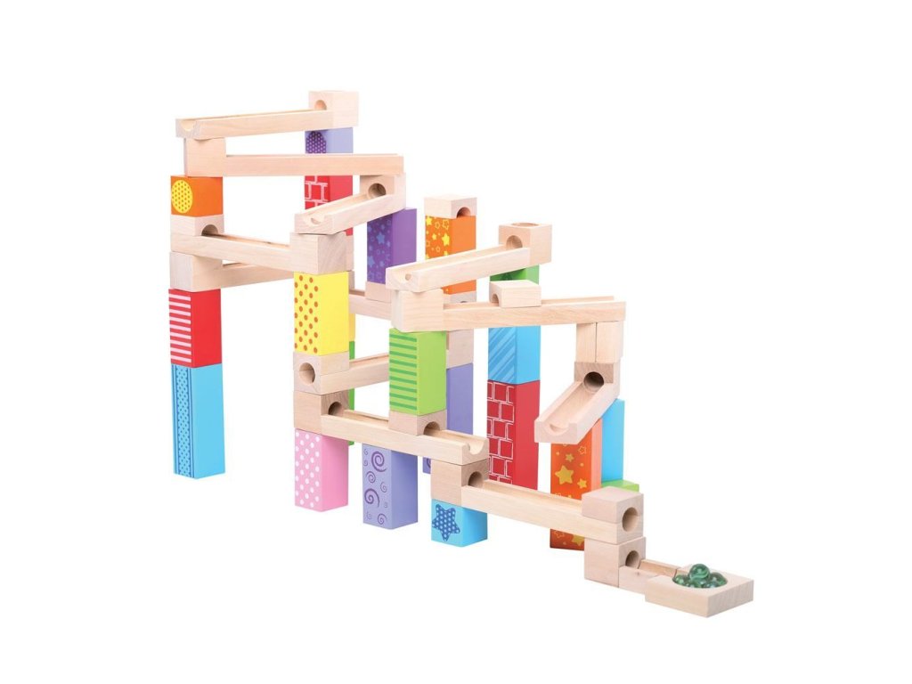 Postavte si barevnou dřevěnou kuličkovu dráhu a s radostí sledujte, jak kuličky sjíždějí shora dolů! Dřevěné kostky vytvoří mnoho různých designů. Skládá se z 53 dílů. Hlavní vlastnosti: ideální pro kreativní hranívyrobeno z vysoce kvalitních a zodpovědně zpracovaných materiálůvyhovuje současným evropským bezpečnostním normámobsahuje 53 dílů