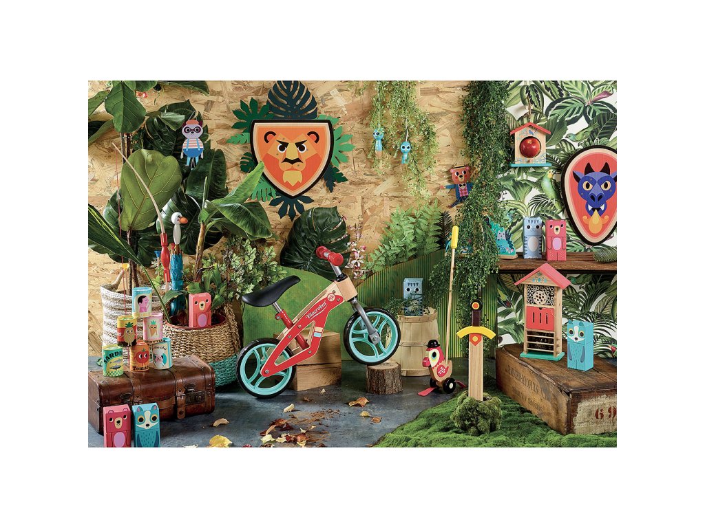 Pojďme si hrát na Indiány. Krabice se při rozložení stává terčem pro střílení, balení obsahuje dřevěný luk a 3 šípy s barevnými přísavkami. Vyrobeno ve Francii. Hlavní vlastnosti: trénuje přesnost a koordinaci pohybůvyrobeno ve Francii