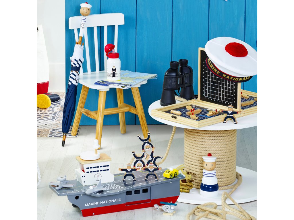 Velmi lehká a odolná hliníková láhev na nápoje, s roztomilými námořnickými ilustracemi. Výsuvný náustek brání vylití obsahu a je opatřen krytkou, která jej udržuje v čistotě. Láhev je možno mýt v myčce na nádobí. Hlavní vlastnosti: objem 300 mllehká a odolná Šťastnou plavbu! To je přání námořníkům, kteří vyráží na moře. Toto přeje i Vilac, se svou kolekcí, kterou vyvinuli ve spolupráci s francouzským námořnictvem. Vůni moře vítr dofoukal až do pohoří Jura, výsledek jistě potěší malé námořníky a námořnice, také dospělé, kteří pečují o své vnitřní dítě!