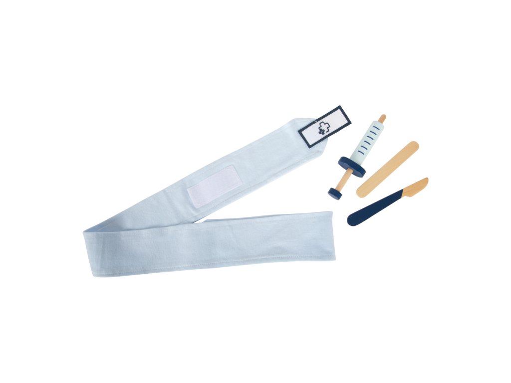 Poškozený obal. Nové zboží bez závad. S touto standardní lékařskou brašnou budou mladí nadějní lékaři perfektně vybaveni. Brašna je vyrobená z měkkého textilu, je pěkná na pohled a také velmi funkční. Lze lehce otevřít díky magnetům, je vyrobena ze dřeva. Uvnitř brašny najdete všechno vybavení pro představivé ošetření pacientů: stetoskop, teploměr, stříkačku a mnoho dalšího – vše vyrobeno z pevného dřeva! Nejlepšími doplňky jsou zřejmě tlakoměr s manžetou a balónkem a otoskop s lupou. Tento obsáhlý set lékařských hraček obsahuje mnoho „opravdových“ lékařských nástrojů a přístrojů, s kterými si děti opravdu vyhrají. Ilustrace na lékařských pomůckách dětem poradí rozeznat nástroje a také jim možná zjednoduší jejich použití. Hlavní vlastnosti: Doktorská brašna s jasně viditelným dřevemTlakoměr s manžetou a balónkemTeploměr s nastavitelnou teplotouOtoskop s opravdovou lupouLahvička na léky se šroubovatelným víčkemNáplasti na suchý zipZnovu použitelné a pratelné dětské textilní rouškyDalší vybavení: injekční stříkačka s pohyblivým mechanismem, stetoskop, dezinfekce s pumpičkou, lahvička s léky a lžička, pinzeta, skalpel, reflexní kladivo