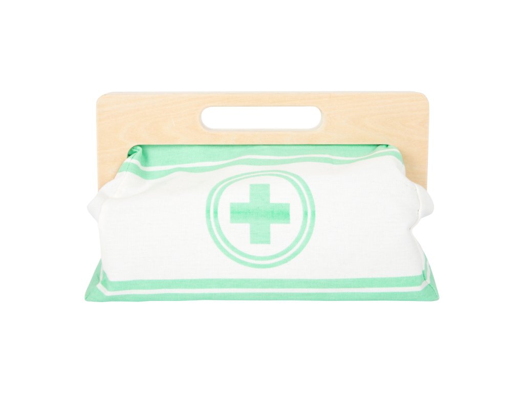 S touto standardní lékařskou brašnou budou mladí nadějní lékaři perfektně vybaveni. Brašna je vyrobená z měkkého textilu, je pěkná na pohled a také velmi funkční. Lze lehce otevřít díky magnetům, je vyrobena ze dřeva. Uvnitř brašny najdete všechno vybavení pro představivé ošetření pacientů: stetoskop, teploměr, stříkačku a mnoho dalšího – vše vyrobeno z pevného dřeva! Nejlepšími doplňky jsou zřejmě tlakoměr s manžetou a balónkem a otoskop s lupou. Tento obsáhlý set lékařských hraček obsahuje mnoho „opravdových“ lékařských nástrojů a přístrojů, s kterými si děti opravdu vyhrají. Ilustrace na lékařských pomůckách dětem poradí rozeznat nástroje a také jim možná zjednoduší jejich použití. Hlavní vlastnosti: Doktorská brašna s jasně viditelným dřevemTlakoměr s manžetou a balónkemTeploměr s nastavitelnou teplotouOtoskop s opravdovou lupouLahvička na léky se šroubovatelným víčkemNáplasti na suchý zipZnovu použitelné a pratelné dětské textilní rouškyDalší vybavení: injekční stříkačka s pohyblivým mechanismem, stetoskop, dezinfekce s pumpičkou, lahvička s léky a lžička, pinzeta, skalpel, reflexní kladivo