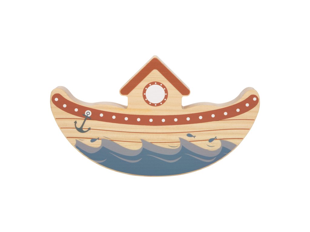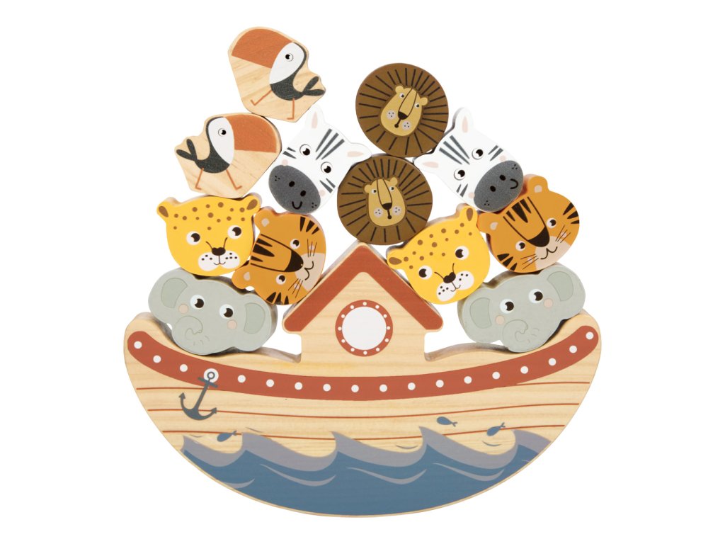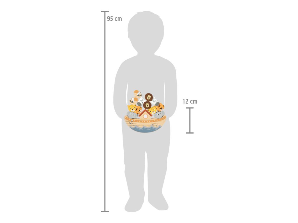 Poškozený obal. Nové zboží bez závad. Vybalancujete vratkou archu a zachráníte před potopou všechna zvířátka? Házejte kostkou a ukládejte dílky příslušných barev s motivy roztomilých zvířat na základnu v podobě rozhoupané lodi. Rozvíjejte hrou koordinaci rukou a zraku či trpělivost. Hračka je velmi robustní a odolná, vyrobená z masivního dřeva a vyvedená v atraktivním barevném schématu produktové řady Small Foot Safari. Hlavní vlastnosti: základna, 12 herních dílků a hrací kostkaodolné provedení z masivního dřeva