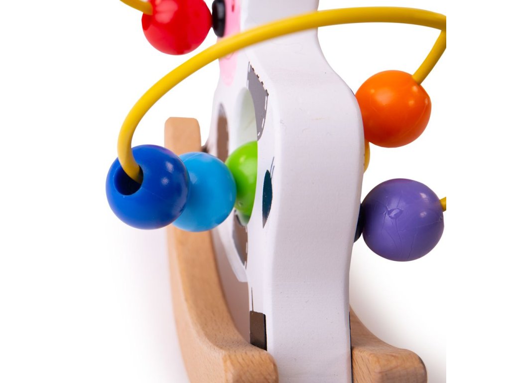 Tento dřevěný motorický labrint kravička má krásný pestrobarevný kovový labyrint s korálky a mezi dětmi je velmi oblíbený. Kravička se houpe a pomáhá dětem rozvíjet motoriku a koordinaci pohybů. Hlavní vlastnosti: podporuje motoriku a koordinaci pohybů dětívyrobeno z vysoce kvalitních a zodpovědně zpracovaných materiálů vyhovuje současným evropským bezpečnostním normám