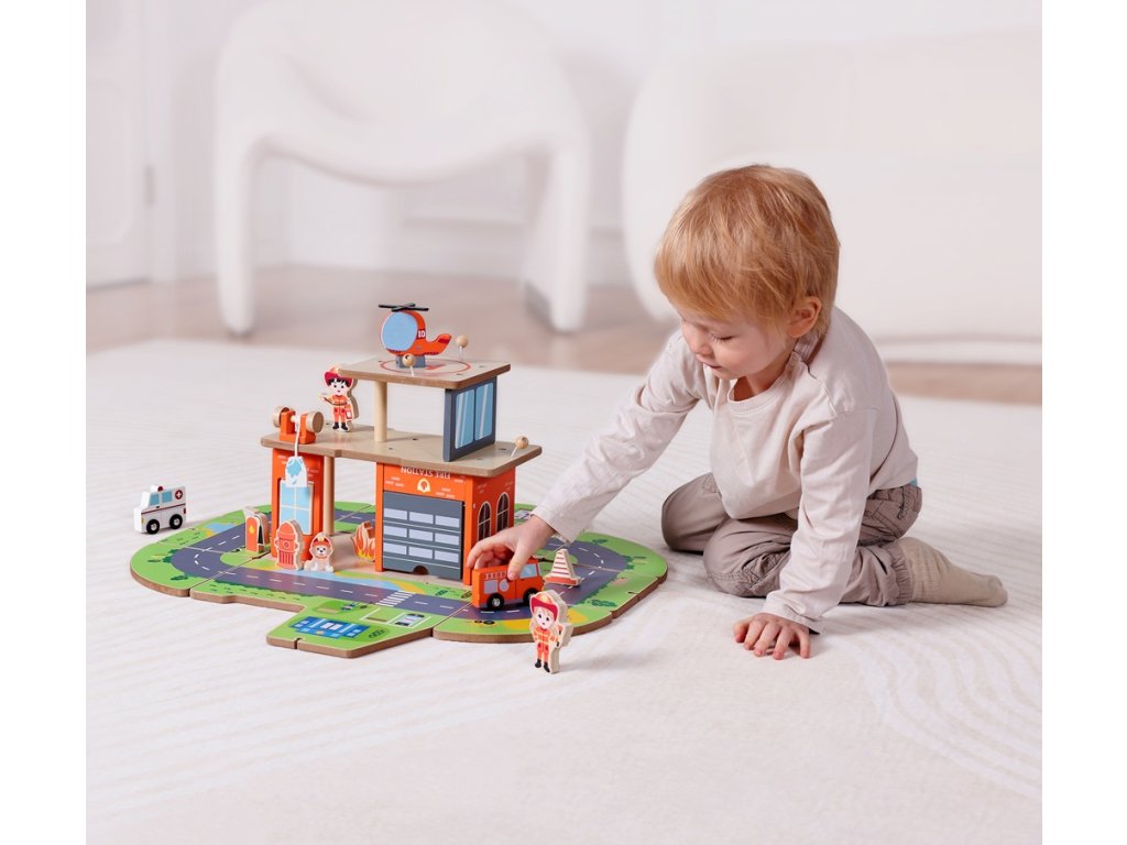 2Kids Toys Dřevěná stanice Hasiči 2 v 1. Hasičská stanice a Auto. Připrav se na akci! Tento unikátní výrobek spojuje dvě oblíbené dětské hračky do jednoho úžasného zážitku. Detailní hasičská stanice nabízí výjezdová vrata, cestu, řídící centrum, parkovací místa, záchranářské vybavení připravené na každou nouzovou situaci, figurky hasičů, vozů, psa a další. Potřebujete stanici přemístit jinam? Pak ji složte a proměňte ve stylové hasičské auto, které může okamžitě vyrazit na místo požáru! Ideální hračka pro malé hrdiny, kteří milují dobrodružství, stavění a záchranu! Hlavní vlastnosti: podněcuje fantaziirozvíjí jemnou motoriku učí děti týmové spolupráciauto i hasičská stanice v jednomobsahuje 13 dílů