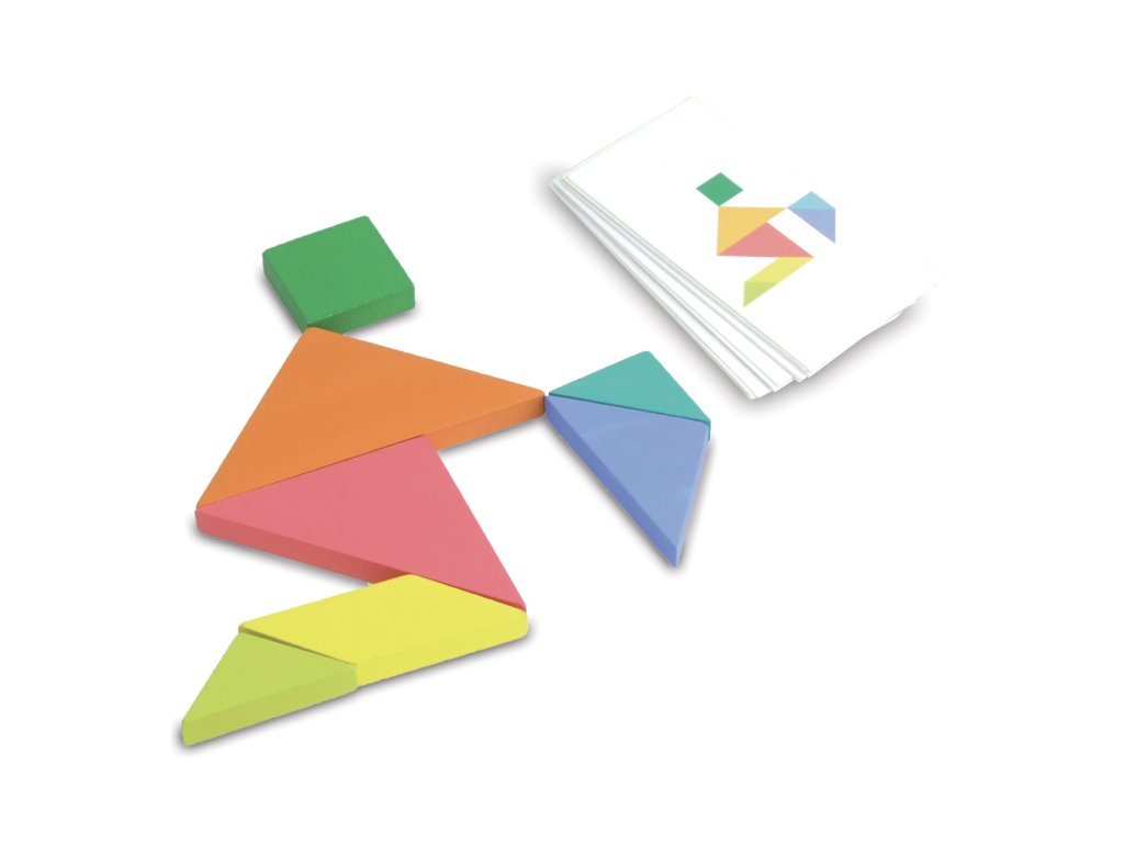 Ten, kdo jako první postaví tangram podle obrázku na kartičce vyhrává! Hra obsahuje více než 100 kartiček a má 4 úrovně obtížnosti. Balení obsahuje dva sety tangramů a kartičky se siluetami. Hra je vhodná pro 1-2 hráče od 5 do 100 let věku. Hlavní vlastnosti: trénuje logické myšlenípodporuje prostorovou představivost