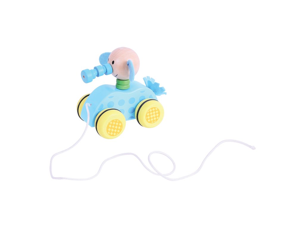 Tahací hračka v podobě slona. Hlavní vlastnosti: výrobek splňuje požadavky EU na bezpečnost hraček