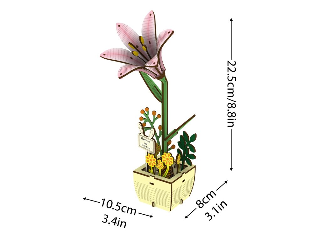 Zpestřete si každodenní život barevnými květinami a překvapte své blízké vlastnoručně vyrobeným dárkem. Darování květiny je vynikající způsob, jak vyjádřit obdarovanému lásku, obdiv či přátelství a popřát mu vše nejlepší. Každá květina má svůj význam. Lilie je symbolem lásky, obdivu, soucitu a ženskosti. Tato skládačka je skvělým způsobem, jak si užít kreativní a edukativní hraní a zároveň vytvořit nádherný model květiny, který se může stát netradičním dárkem či ozdobou každého interiéru. Skládání podporuje rozvoj jemné motoriky, prostorového myšlení a trpělivosti. Je to možnost, jak kombinovat zábavu se vzděláváním. Skládačka je dodávána v nesloženém stavu. Hlavní vlastnosti: výjimečný a realistický vzhledvhodné pro děti i dospělérozvíjí logické a motorické dovednostipodporuje trpělivost dětíideální jako dárek nebo jedinečná dekorace