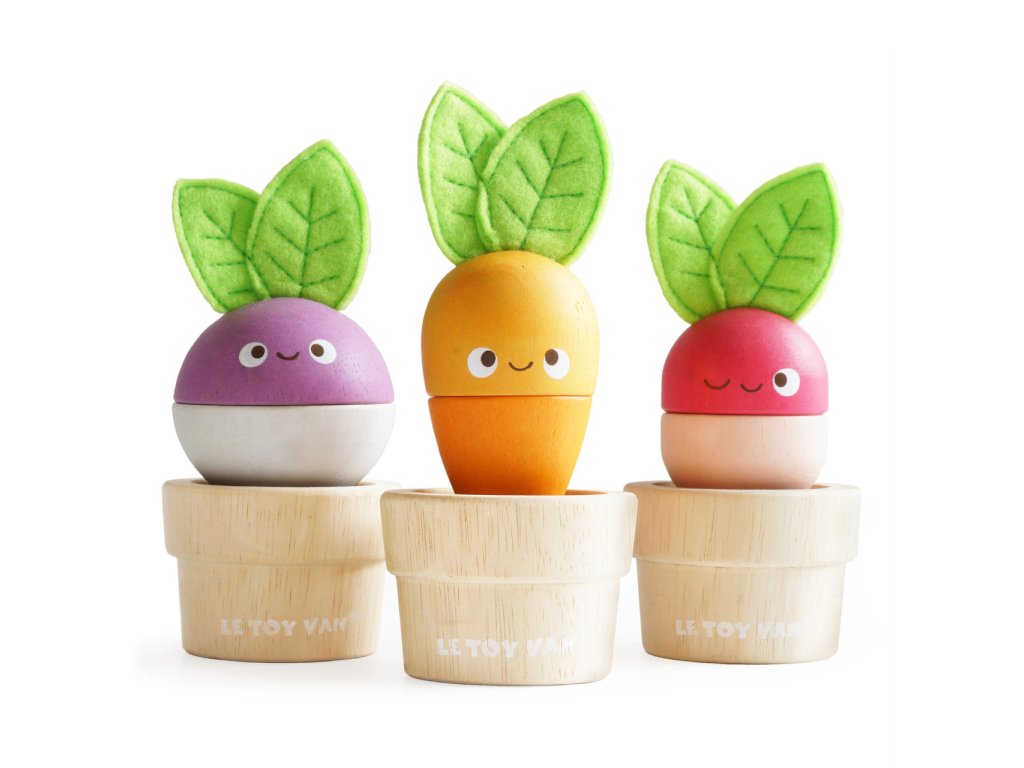 Zelenina je důležitá! Mladí zahrádkáři nebo milovníci přírody si tuto hračku o 6 dílech jistě oblíbí. Mohou mixovat jednotlivé dílky a vytvořit v květináčku úplně nový typ zeleniny nebo se držet předlohy a poskládat mrkev, ředkev a řepu. Vzdělávací hračka má velikost tak akorát pro dětské ruce. Je zábavná a univerzální, děti si s ní procvičí jemnou motoriku, zručnost a představivost. Hračka je vyrobená z odolného a udržitelného kaučukového dřeva, malována barvami na bázi vody. Nechybí ani ručně šité plstěné lístky. Hračky s účelemVšechny hračky firmy Le Toy Van jsou vyrobeny s cílem – aby dlouho vydržely. Designovány s láskou zkušenými řemeslníky za použití etických praktik a udržitelných materiálů, které jsou laskavější k naší planetě. Hlavní vlastnosti: vyrobeno eticky z udržitelného dřevatestováno dle nejpřísnějších standardůmalováno netoxickými barvami na bázi vodyinspiruje k představivé hřerozvíjí koordinaci ruka-okomultisenzorická hračka Petilou kolekce: Kolekce pro nemluvňata a batolata od Le Toy Van obsahuje hlavně hmatové hračky, které mají nejmenším posloužit také jako učební prostředky. Kolekce je inspirována přírodou kolem nás a je navržena tak, aby rozvíjela smysly dětí pomocí rozdílných zvuků, textur, tvarů a hmotností. Děti tak od malička zapojí všechny své smysly. V kolekci najdete například skládačky, vkládačky, chodítka, …