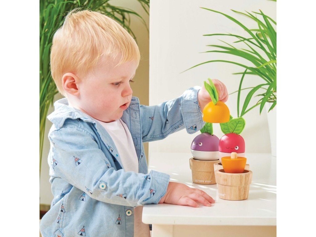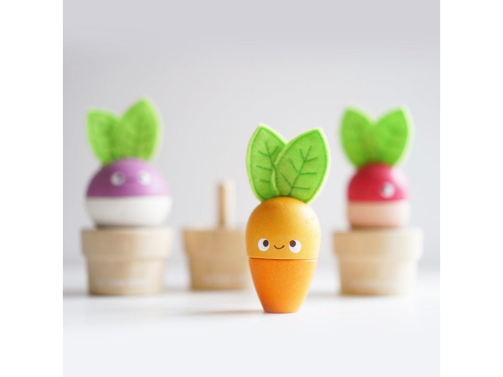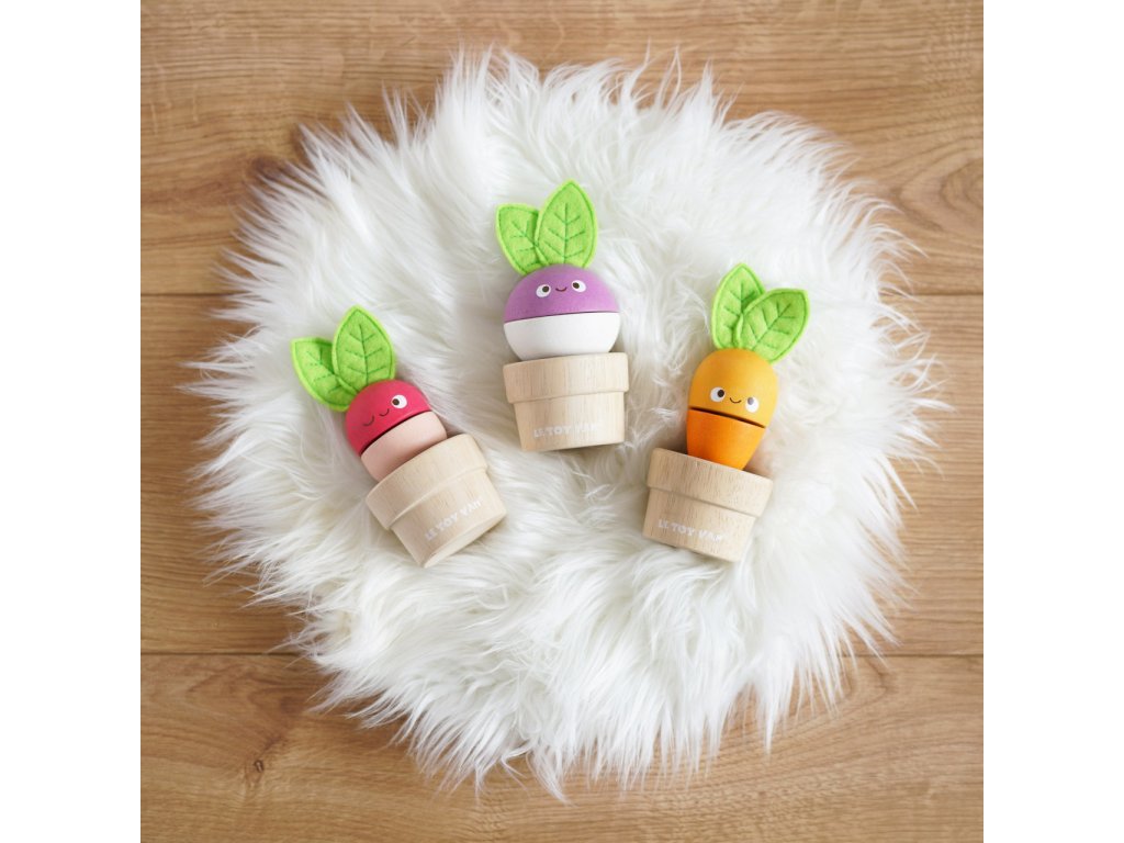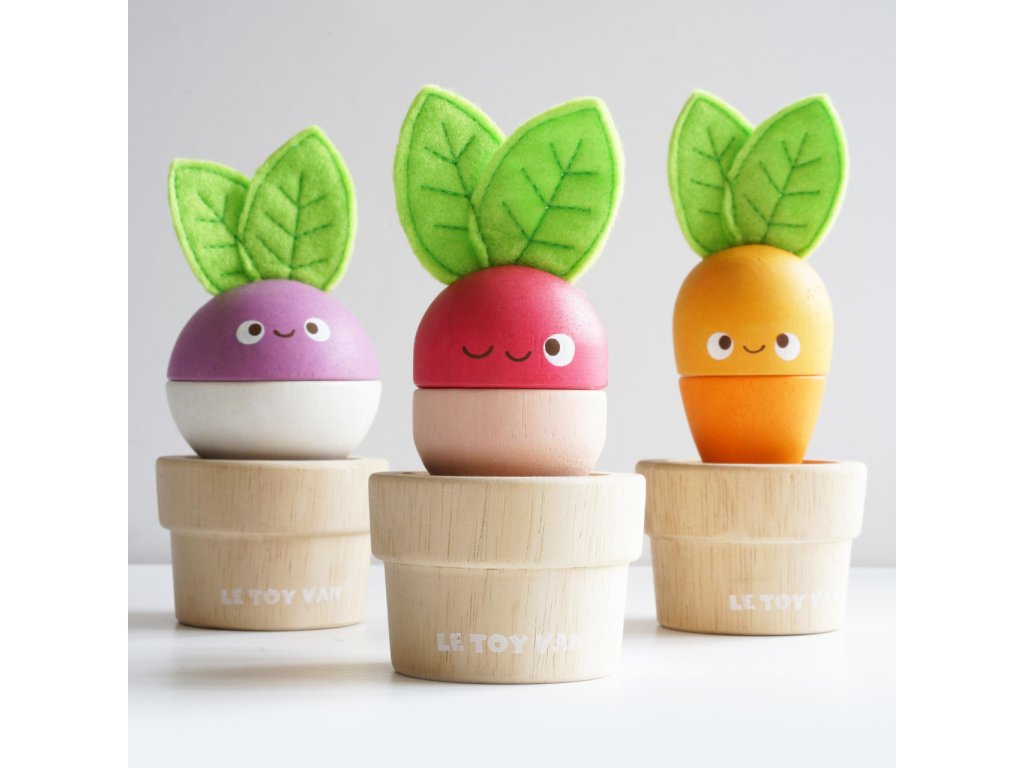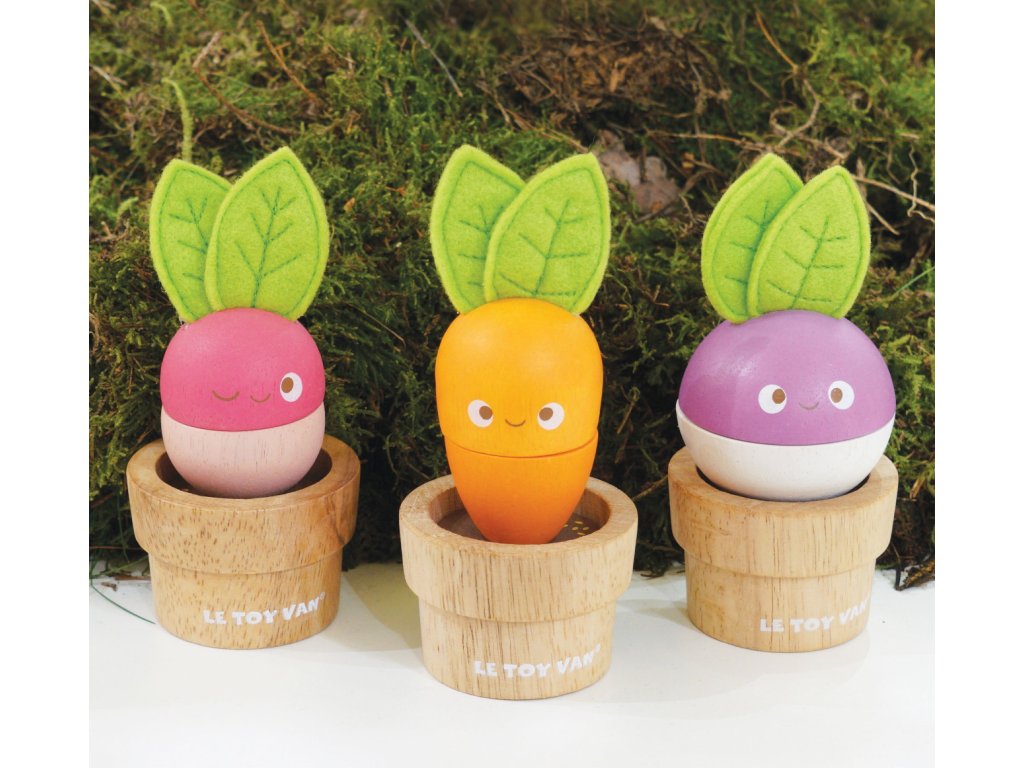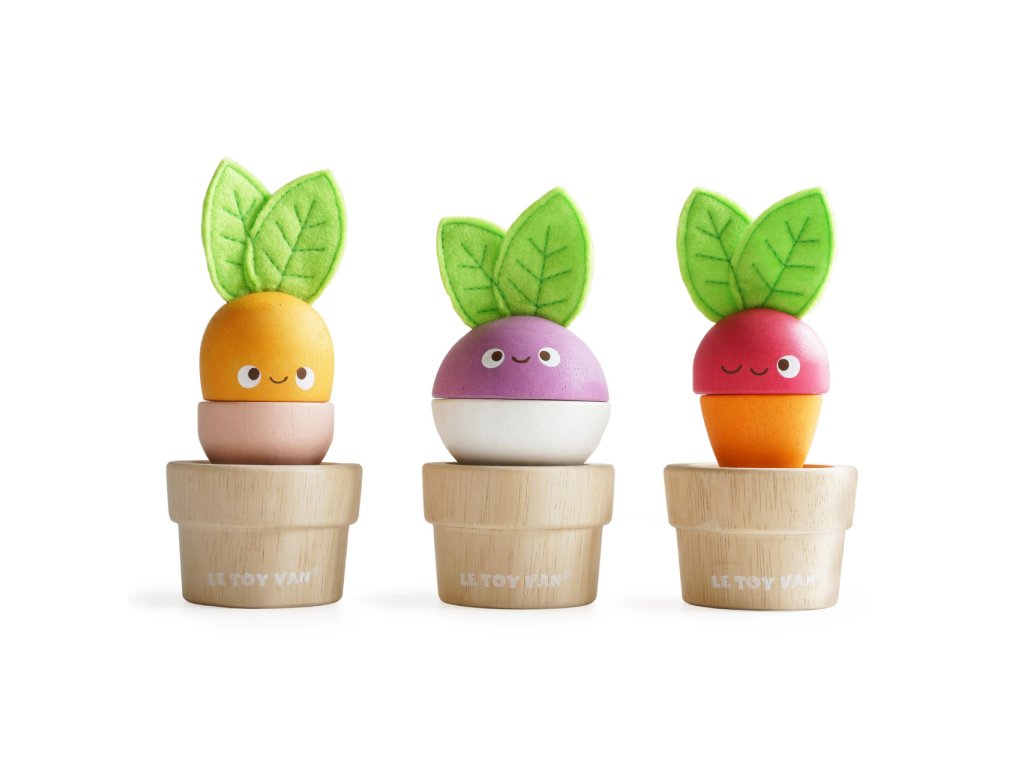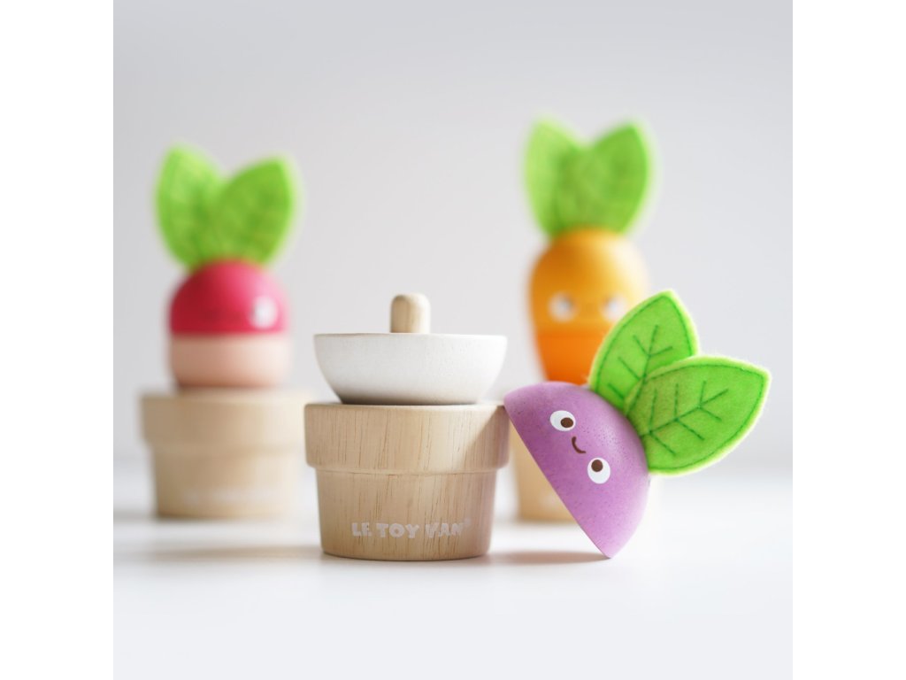 Zelenina je důležitá! Mladí zahrádkáři nebo milovníci přírody si tuto hračku o 6 dílech jistě oblíbí. Mohou mixovat jednotlivé dílky a vytvořit v květináčku úplně nový typ zeleniny nebo se držet předlohy a poskládat mrkev, ředkev a řepu. Vzdělávací hračka má velikost tak akorát pro dětské ruce. Je zábavná a univerzální, děti si s ní procvičí jemnou motoriku, zručnost a představivost. Hračka je vyrobená z odolného a udržitelného kaučukového dřeva, malována barvami na bázi vody. Nechybí ani ručně šité plstěné lístky. Hračky s účelemVšechny hračky firmy Le Toy Van jsou vyrobeny s cílem – aby dlouho vydržely. Designovány s láskou zkušenými řemeslníky za použití etických praktik a udržitelných materiálů, které jsou laskavější k naší planetě. Hlavní vlastnosti: vyrobeno eticky z udržitelného dřevatestováno dle nejpřísnějších standardůmalováno netoxickými barvami na bázi vodyinspiruje k představivé hřerozvíjí koordinaci ruka-okomultisenzorická hračka Petilou kolekce: Kolekce pro nemluvňata a batolata od Le Toy Van obsahuje hlavně hmatové hračky, které mají nejmenším posloužit také jako učební prostředky. Kolekce je inspirována přírodou kolem nás a je navržena tak, aby rozvíjela smysly dětí pomocí rozdílných zvuků, textur, tvarů a hmotností. Děti tak od malička zapojí všechny své smysly. V kolekci najdete například skládačky, vkládačky, chodítka, …