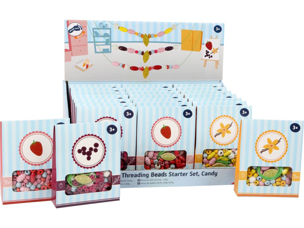 Set 24 korálků. Návrháři šperků, zpozorněte! Tato sada korálků dává volnost kreativitě a fantazii. Barevné dřevěné korálky a roztomilé přívěsky jsou uloženy v sáčcích na sladkosti a lze je vyměňovat s přáteli. Jahoda, vanilka nebo borůvka – každý si najde svou barvičku! Varianty jsou kombinovatelné s LE11249, což nabízí optimální možnosti jak si děti můžou nasbírat všechny typy korálků. Hlavní vlastnosti: ideální pro kreativní navrhování vlastních šperkůvelký výběr navlékacích korálkůtrénuje trpělivost a jemnou motorikurozvíjí kreativitu