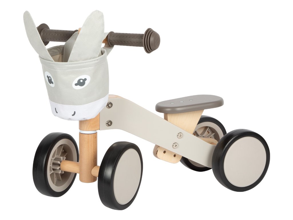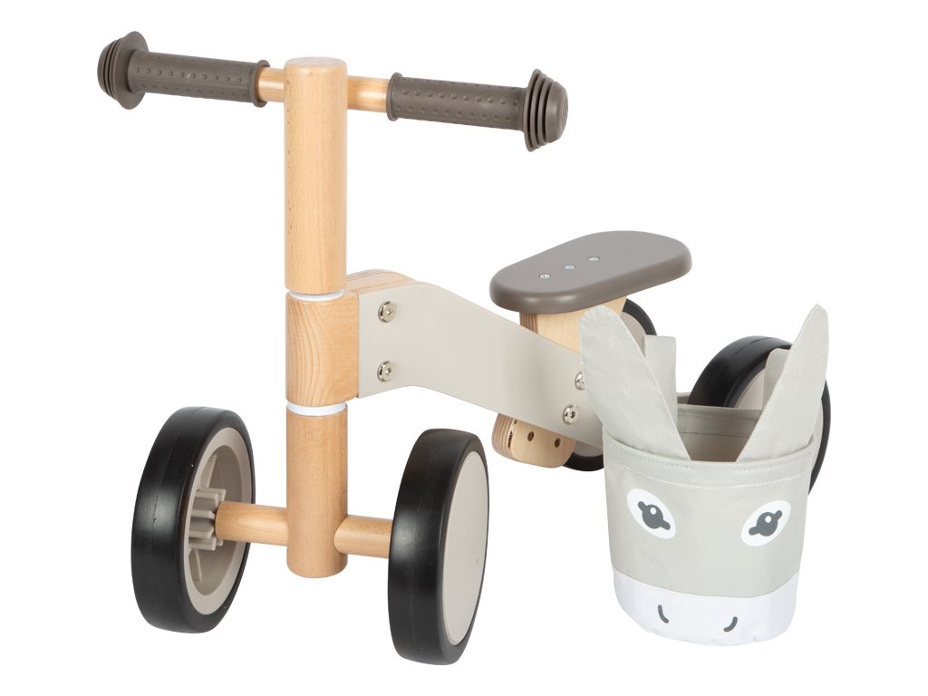 Dřevěné odrážedlo v designu oslíka, které se stane nepostradatelným pomocníkem Vašeho dítka doma i při procházkách venku. Proč namáhat nožičky, když může sednout a frčet?! Dřevěná robustní konstrukce je nejen příjemná na dotek, ale i nesmírně stabilní. Pogumovaná kola zajistí, že vaše dítě může prozkoumávat svět tiše a bezpečně, aniž by rušilo okolí. Gumové rukojeti nabídnou malým průzkumníkům pevný úchop a kontrolu nad svým vozítkem. Sedátko je nastavitelné od 22 do 25 cm, může se tak přizpůsobit výšce dítěte. Součástí je také odepínatelná taška na řídítkách v designu oslíka, která může sloužit jako praktický úložný prostor pro láhev s pitím či plyšového kamaráda. Zadní kola jsou blízko sebe a nabízejí tak dostatek prostoru pro nohy při odrazu. Hlavní vlastnosti: zajímavý design s funkčními prvkynastavitelné sedátko na výšku a vzdálenost od řídítekodnímatelná taška v designu osladřevěná robustní konstrukcepogumovaná kolagumové rukojetirozvíjí pohybové dovednosti a rovnováhu dětívhodné pro děti od 12 měsíců