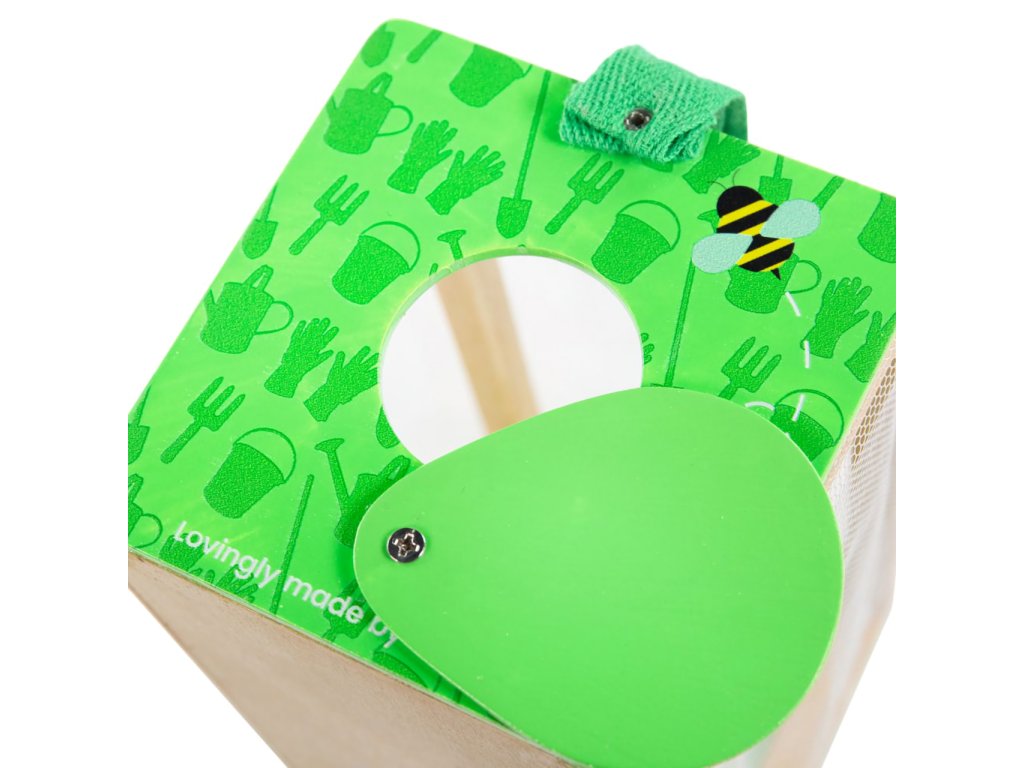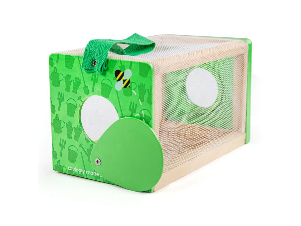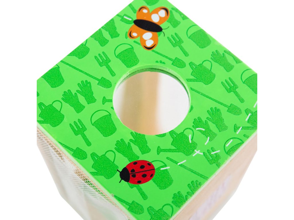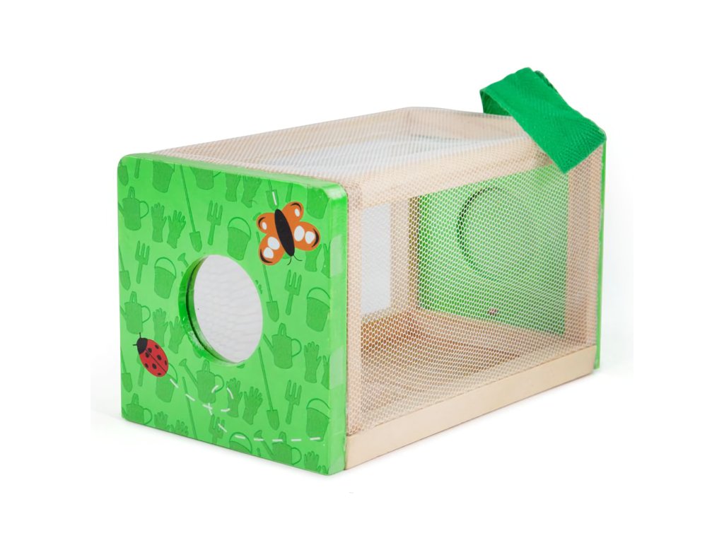 Kdo uloví krásnějšího brouka, nebo motýla? Ukládejte si své úlovky do síťovaného boxu, kde budou moci volně dýchat a Vy je přitom budete moci pozorovat průzorem v jedné ze stěn. Nezapomenete nakonec všechny ty užitečné drobné tvorečky pustit na svobodu? Čela boxu jsou zdobena roztomilými přírodními motivy. Pro snazší manipulaci a uskladnění je krabička vybavena látkovým poutkem. Vyrobeno z kvalitních a zodpovědně získaných materiálů. Hlavní vlastnosti:průzor pro nezkreslené pozorováníatraktivní dřevěné provedení