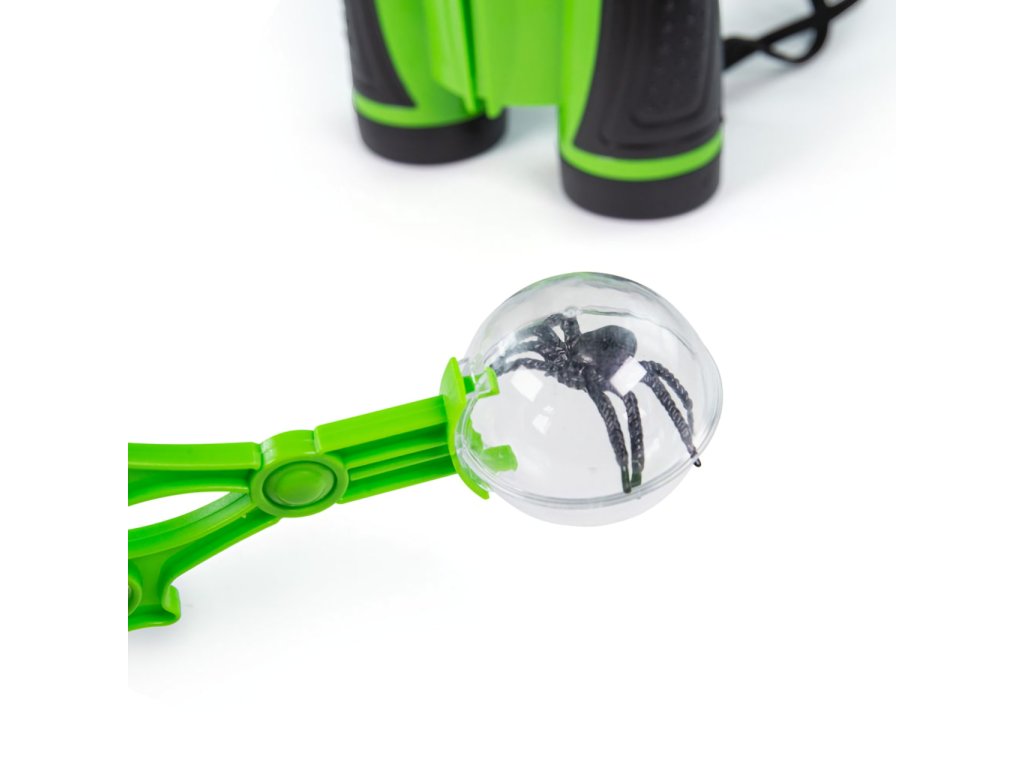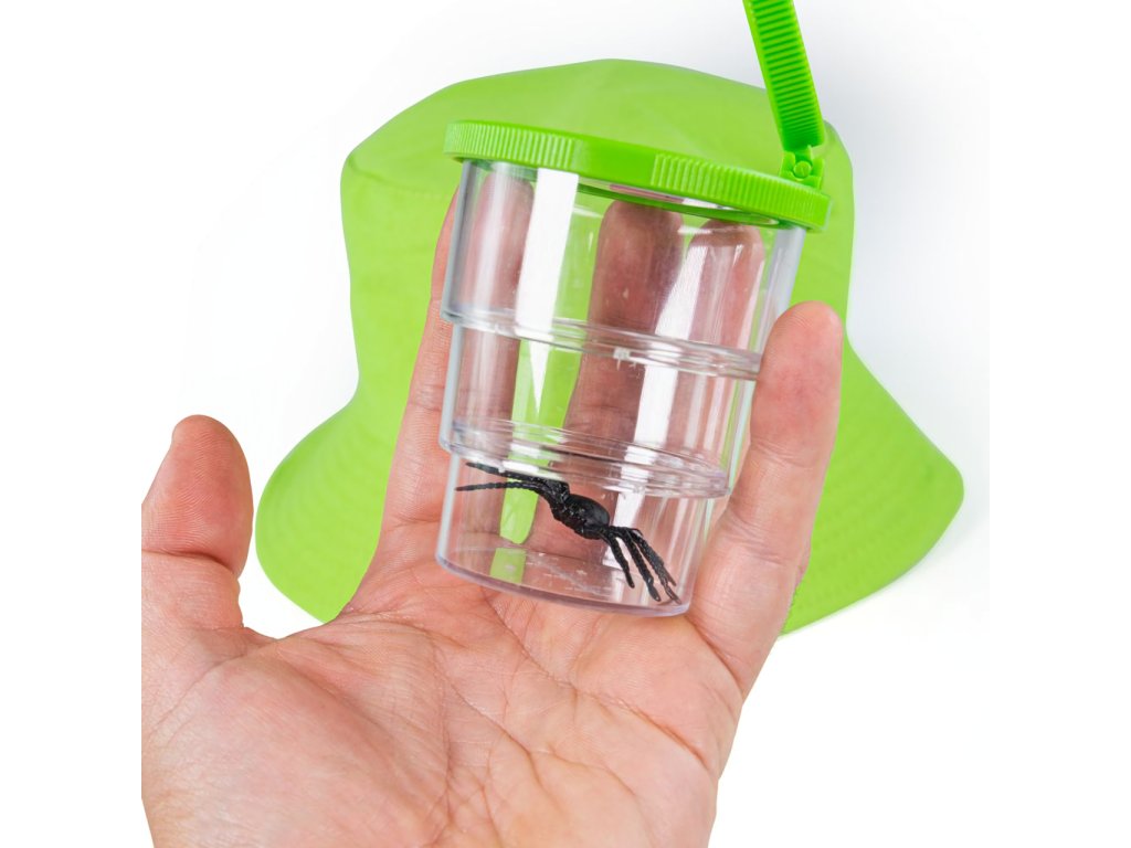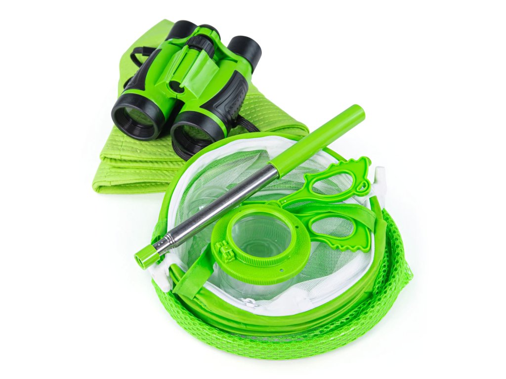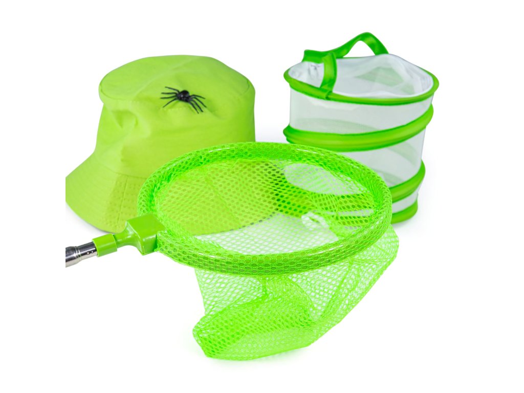 Se soupravou k lovení hmyzu budou z Vašich dětí rázem skuteční přírodopisní výzkumníci a objevitelé. Obsahuje veškeré příslušenství nezbytné jak k lovu, tak k přenášení a pozorování úlovků. Zvířátka lze chytat do síťky, nebo lapacích kleštiček a přemisťovat do nádobky či tašky, žádný detail pak dětem neunikne díky lupě. Navíc jsou součástí sady i doplňky v podobě užitečného kloboučku chránícího před sluncem a dalekohledu k pozorování terénu nebo dalších zvířátek. Souprava je prakticky skladná díky odnímatelné teleskopické násadě síťky a rozkládací konstrukci síťované tašky, může Vás tak vždy provázet na výletech ven. Jasně zelené barevné provedení je poutavé pro děti a zároveň v přírodě nepůsobí rušivě. Všechny součásti byly vyrobeny z vysoce kvalitních a odpovědně získaných materiálů. Hlavní vlastnosti: síťka, síťovaná taška, nádobka na úlovky, lapací kleštičky, lupa, dalekohled a kloboučekodnímatelná teleskopická násada síťkypraktická skládací konstrukce taškyatraktivní a odolné
