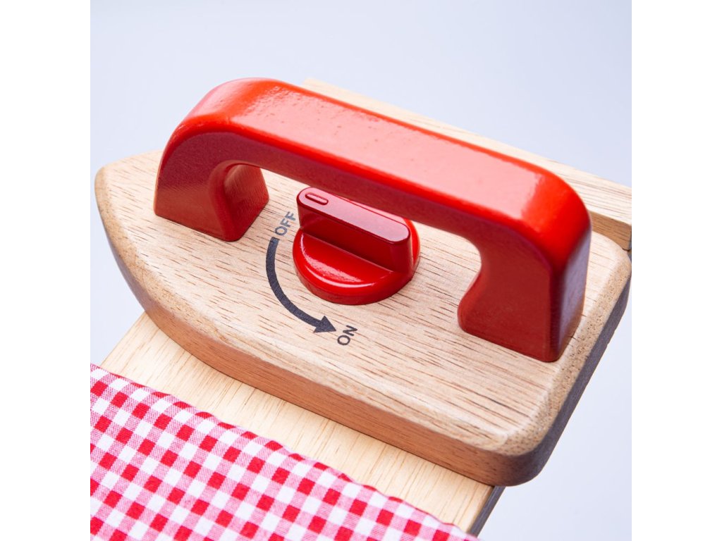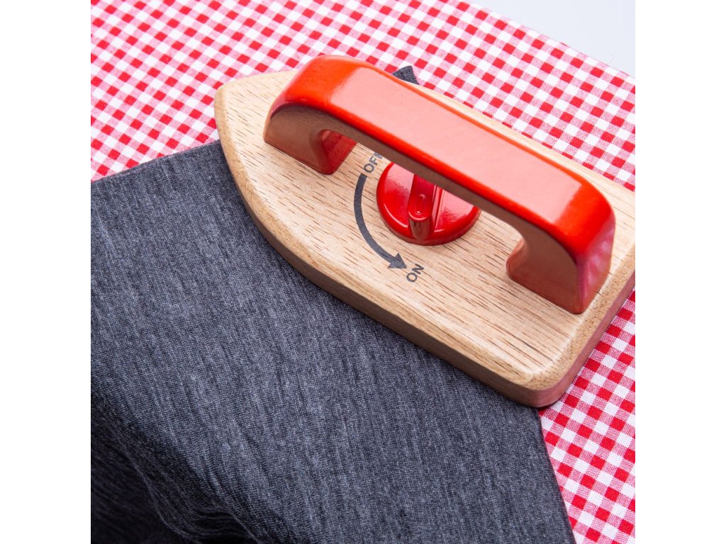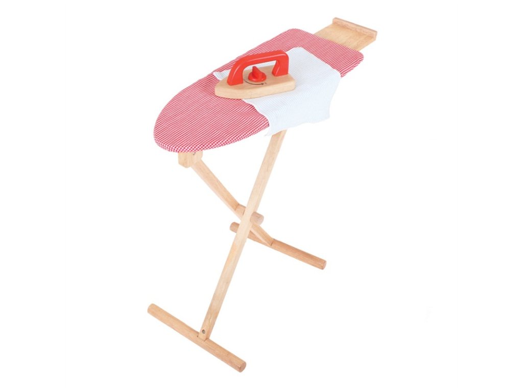 Vaši nejmenší budou jistě nadšení z tohoto jasného a robustního dřevěného žehlícího prkna a dřevěné žehličky. Ideální k žehlení oblečení pro panenky, nebo k pomáhání žehlení mamince či tatínkovi. Skvělý doplněk k našemu dřevěnému sortimentu pro domácnost. Vyrobeno z vysoce kvalitních, zodpovědně získaných materiálů. Splňuje aktuální evropské bezpečnostní normy. Hlavní vlastnosti: obsahuje dřevěné žehlící prkno potažené látkou a dřevěnou žehličkoupodporuje kreativitu, zručnost a realistickou hru