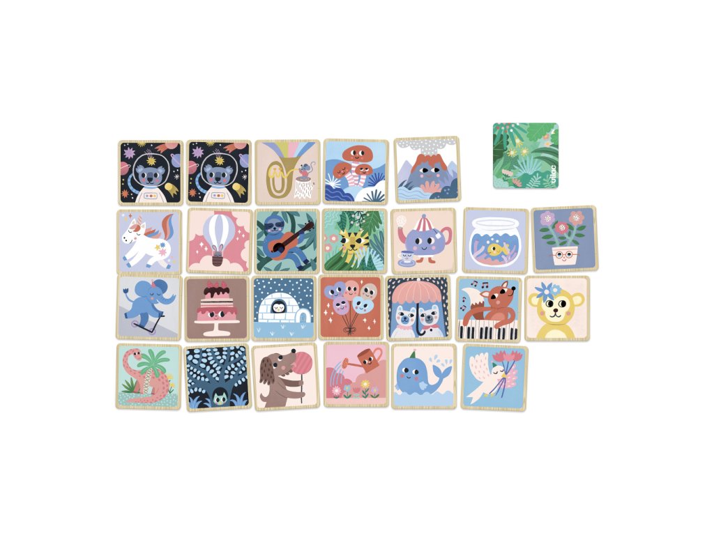 Hledáte originální pexeso? Chcete vidět lišku hrající na klavír, psa držícího lízátko, myšku hrající na tubu, nebo slona jezdícího na koloběžce? Vypravte se do fantastického světa zvířat za doprovodu hravých ilustrací Michelle Carlslund. Herní dílky jsou svými rozměry přizpůsobeny ručkám nejmenších, jsou vyrobeny z odolného dřeva a opatřeny kvalitním potiskem. Hra je dodávána v bohatě dekorované dřevěné krabičce, která se na poličce snadno stane nepřehlédnutelnou atrakcí. Hlavní vlastnosti: 48 herních dílkůdesign Michelle Carlslundodolné dřevěné provedenípraktické a atraktivní balení Cestujte s námi v naivním a elegantním světě dánské ilustrátorky Michelle Carlslund, světě jemných barev, který je plný roztomilých medvědů a přátelských ptáčků. V roce 2010, když Michelle ještě studovala grafický design, vytiskla doma své ilustrace a zkusila je prodat na designovém trhu, kde se setkaly s velkým úspěchem! Několik obchůdků chtělo začít prodávat její výtvory, a tak ji napadlo, že by bylo fajn začít podnikat. Michelle se rychle stala uznávanou nezávislou ilustrátorkou. Dnes lze její ekologická grafická díla zakoupit po celém světě v designových buticích, papírnictvích a dětských obchodech. Michelle se inspiruje vším kolem ní. Její výtvory jsou něžné a poetické, stylizovaný a dětinský styl, který se perfektně prolíná s hračkami firmy Vilac. „Jsem hranolky milující, časová optimistka a tvůrkyně ekologických plakátů a ilustrátorka na volné noze se sídlem v dánské Kodani,“ to by řekla ilustrátorka Michelle Carlslundová, kdyby se měla popsat jednou větou.