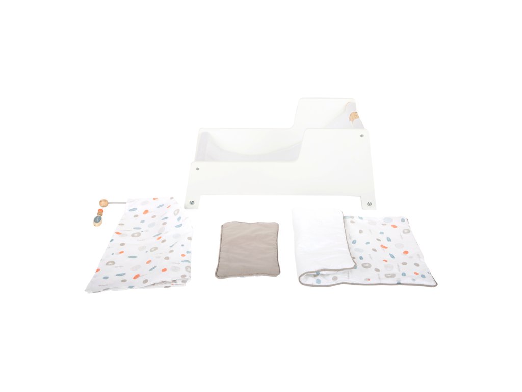 Panenky také potřebují spát! Tato moderní kolébka ve skandinávském designu je genderově neutrální, má oboustranné povlečení a pod velkou peřinou mohou spát panenky a plyšáci do 46 cm. Spodní část tzv. lyže kolébky jsou oddělitelné, stejně jako baldachýn. Vysoce kvalitní, stabilní konstrukce, zaoblené hrany, viditelně ze dřeva... Perfektní hračka do každého dětského pokoje. Hlavní vlastnosti: kolébka a postýlka v jednombaldachýn a závěsná hračkalyže a baldachýn lze oddělitstabilní konstrukce, kvalitní materiálygenderově neutrální povlečení, oversized peřinkazaoblené hrany, viditelně dřevěnápro panenky a plyšáky do 46 cmskandinávský lineární design, jemné barevné tóny Little ButtonŘada atraktivního příslušenství pro panenky Little Button nabízí pestrou paletu výrobků, od kočárku přes jídelní židličku až po skříň. Zákazníky snadno zaujmou jednotným funkčním a decentním designem využívajícím přímé linie a střídmé neutrální barvy. Díky tomu spolu mohou vytvořit ucelené harmonické soupravy, které vkusně doplní moderní interiér. Důmyslná konstrukce a kvalitní zpracování pomáhají zajistit vysokou stabilitu, bezpečnost a dlouhou životnost. Založte s jejich pomocí stylový koutek pro panenky, kde mohou Vaše děti rozvíjet svou fantazii a pečovatelské dovednosti.