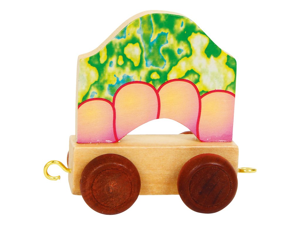 Vagónek je vhodný na všechny druhy vláčkodráh a může být součástí vláčku, který vytvoříte z vagónků písmenek abecedy. Krásný vagón lakovaný v pastelových barvách. S každým dalším vagónkem se vláček prodlužuje a drak roste. Hlavní vlastnosti: kompatibilní s dřevěnými vláčkodráhami jiných výrobcůpodporuje představivost, obratnost a koordinacičím víc vagónků, tím delší drak