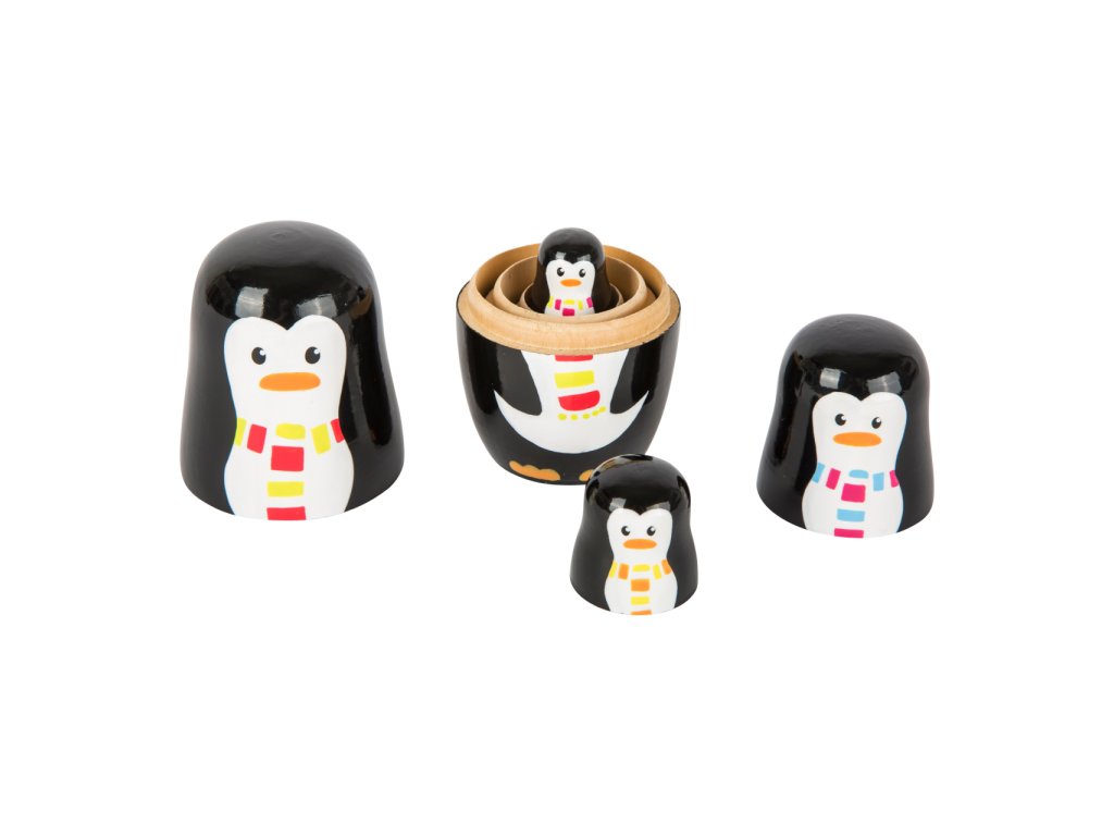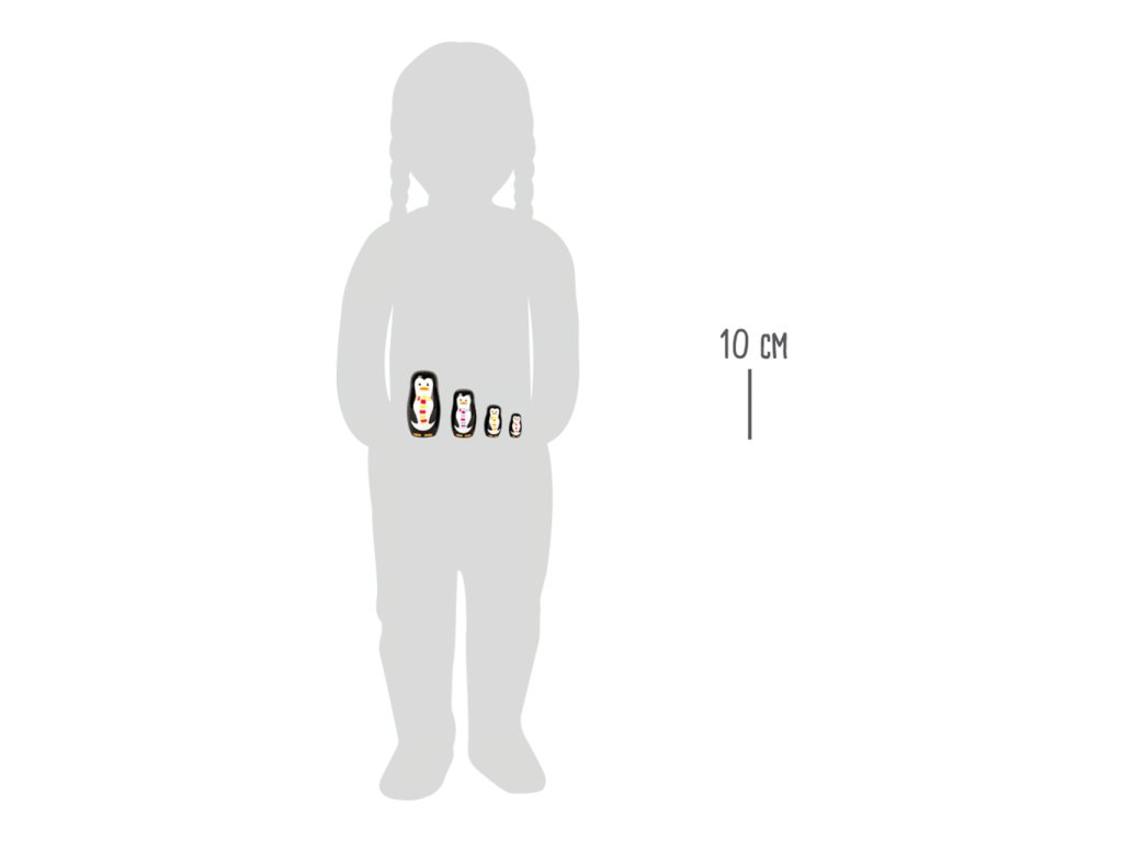 Čtyři láskyplně malované figurky Matrjoška v podobě tučňákovy rodiny. Menší tučňáci se podle velikosti postupně schovávají do sebe. Tyto panenky se snadno uprostřed otevírají, což je skvělá praxe pro koordinaci ruka-oko a jemné motorické dovednosti. Figurky Matrjošky vyzařují své jedinečné kouzlo a jsou roztomilé na pohled - lákavý poutač s velkým studijním potenciálem pro Váš dětský pokoj! Hlavní vlastnosti: 4 figurky tučňákovy rodinkyrozvíjí koordinaci ruka-oko a jemné motorické dovenosti