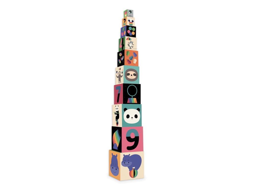 Nechejte děti objevovat duhový svět roztomilých cirkusových zvířat výtvarníka Andyho Westface, se soupravou jedinečných stohovatelných kostek. Stěny kostek obsahují originální ilustrace vztahující se také k příslušnému číslu. Nejmenší tak mohou čísla zábavně poznávat nejen prostřednictvím vztahu k velikosti a rozvíjet poznávací i početní dovednosti. Díky stohovacímu provedení je hračka velmi skladná, zároveň ale umožňuje postavit až 87 cm vysokou věž a rozložená se stane nepřehlédnutelnou ozdobou dětského pokoje. Hlavní vlastnosti: 10 různě velikých a dekorovaných kostekdesign Andy Westfaceatraktivní i praktické provedení Andy Westface je ilustrátor žijící a působící v Hongkongu. Svou prací se snaží zprostředkovat silné pocity a jasné myšlenky za pomoci jednoduchých tvarů, kompozic i barevnosti. Typickými prvky jeho děl jsou zvířata a duha, které si oblíbil pro jejich čistotu, upřímnost a schopnost vzbuzovat radost.