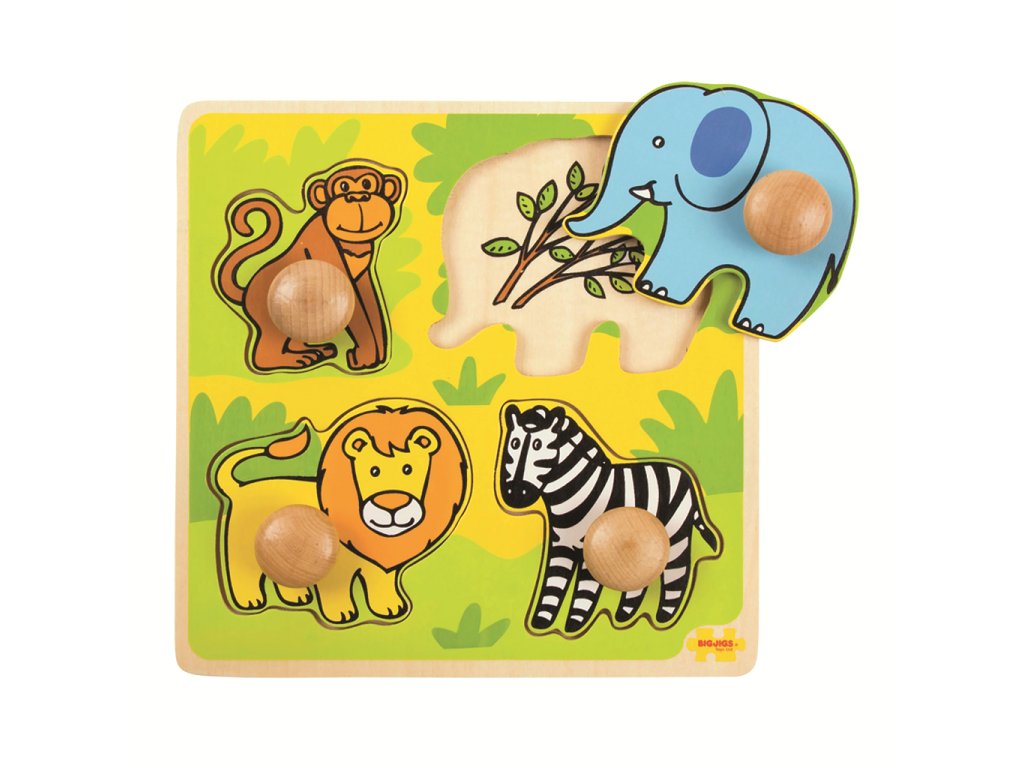 Jakmile jsou všechny dílky skládaček vloženy, vytvoří se živý obrázek safari. Kam jde slon? A co zebra? Bigjigs Toys Puzzle pomáhají rozvíjet slovní zásobu a pomáhají dětem v rozpoznávání tvarů, barev a obrázků. Každý kus dřevěné skládačky má úchyt pro snadnější uchopení a manipulaci. Hlavní vlastnosti: rozvíjí obratnost a koordinaci ruka - okopomáhá rozvíjet obratnost, dovednosti a koncentracivyrobeno z vysoce kvalitních materiálů, které pocházejí ze zodpovědných zdrojůvyhovuje současným evropským bezpečnostním normám