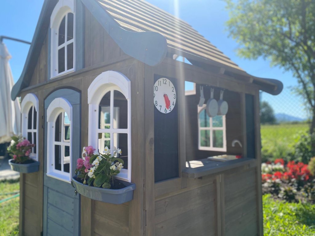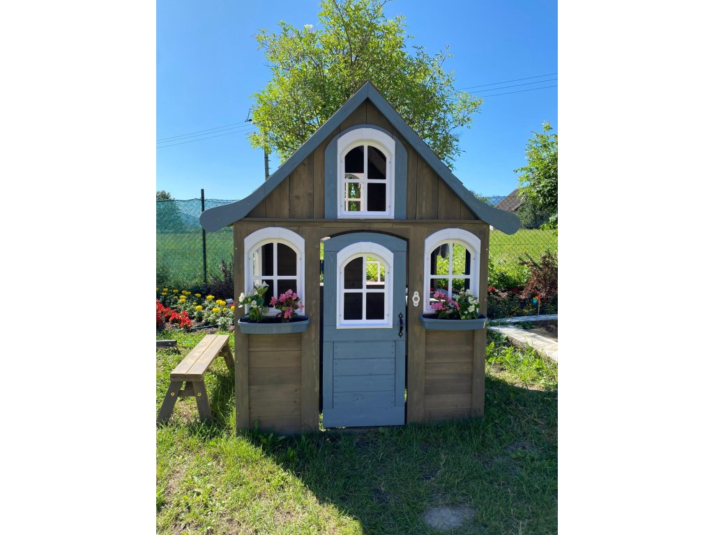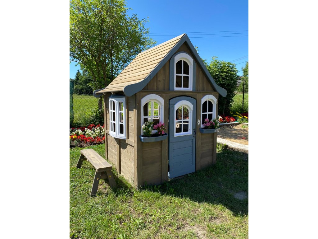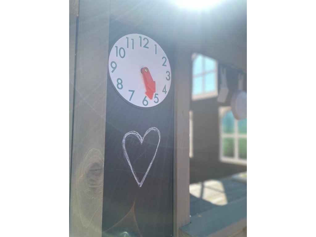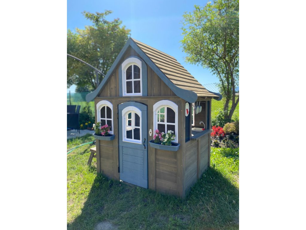 Sníte o poklidném místě, plném relaxu, zábavy a dobrého jídla? Pak jste na správném místě! V tomto rozkošném domečku se budete cítit jako v pohádce. Sněhově bílá okýnka zajišťují nepřetržitý přehled o svém okolí. Detaily jako hodiny, křídové tabulky a truhlíky na květiny přijdou jistě vhod. Útulná kuchyňka v podobě dřezu, vařiče a servírovacího pultu dává možnost malým gurmánům ukázat své kulinářské dovednosti. Díky lavičce se o své pochoutky můžete podělit se svými přáteli. Na co čekáte? Zazvoňte na funkční zvonek a zabydlete se! Ošetřeno základním nátěrem. Pro větší odolnost proti povětrnostním vlivům doporučujeme další ošetření dřevěných dílů. Domeček obsahuje: lavici na sezení (nosnost 50 kg)výdejní okno se servírovacím pultemfunkční zvonek (baterie 2xAAA/LR03 – nejsou součástí balení)kuchyňský dřez a hořák na vaření se 2 pánvemi a obracečkou2 truhlíky na květiny2 kreativní tabule s 1 hodinami Hlavní vlastnosti: rozvíjí sociální dovednostiútulný designkvalitní a detailní provedeníplastová oknatloušťka dřevěných stěn 2,7 cmdřevo ošetřeno nátěremvhodné pro hru více dětí Informace pro B2B partnery: dropshipping v rámci ČR!