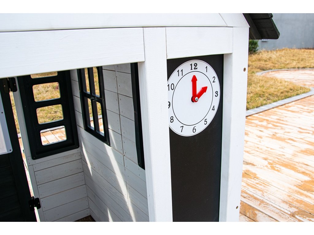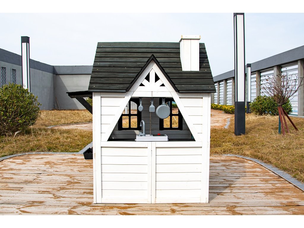 Kdo by netoužil po svém vlastním bydlení! Dopřejte svým dětem klidný kout, kde můžou odpočívat, mít soukromí a nerušeně si hrát. V tomto rozkošném domečku se budou cítit jako v pohádce. Velké boční okno nabízí krásný výhled do okolí a umožní proměnit domeček v prodejní stánek nebo obchod. V útulné kuchyňce, ve které nechybí varná deska s otočným červeným knoflíkem, dřez a základní nádobí, předvedou malí kuchaři a kuchařky své kulinářské dovednosti a připraví pro kamarády nebo rodiče chutné menu. Dalšími stylovými doplňky jsou hodiny, truhlíky po stranách vstupních dveří, ve kterých se budou krásně vyjímat květiny, praktický vstup pro pejska, který je překryt látkovým závěsem s motivem psí boudy. Domeček je vyroben ze dřeva a opatřen nátěrem v přírodních barvách. Bude skvělým doplňkem a ozdobou každé zahrady nebo menšího venkovního prostoru. Tak na co ještě čekáte? Zazvoňte na zvonek a pojďte dál! K napájení zvonku slouží 3 baterie LR44, které nejsou součástí balení. Dodáváno v rozloženém stavu s podrobným návodem na sestavení. Hlavní vlastnosti: funkční zvonek, kuchyňský kout s vybavením (varná deska, dřez, pánev, 2 ks náčiní), truhlíky, vstup pro pejskarozvíjí sociální dovednostiútulný designkvalitní a detailní provedenívyrobeno ze dřevavhodné pro hru více dětík napájení slouží 3 baterie LR44 (nejsou součástí balení)dodáváno v rozloženém stavunávod na sestavení je součástí balení Informace pro B2B partnery: dropshipping v rámci ČR!