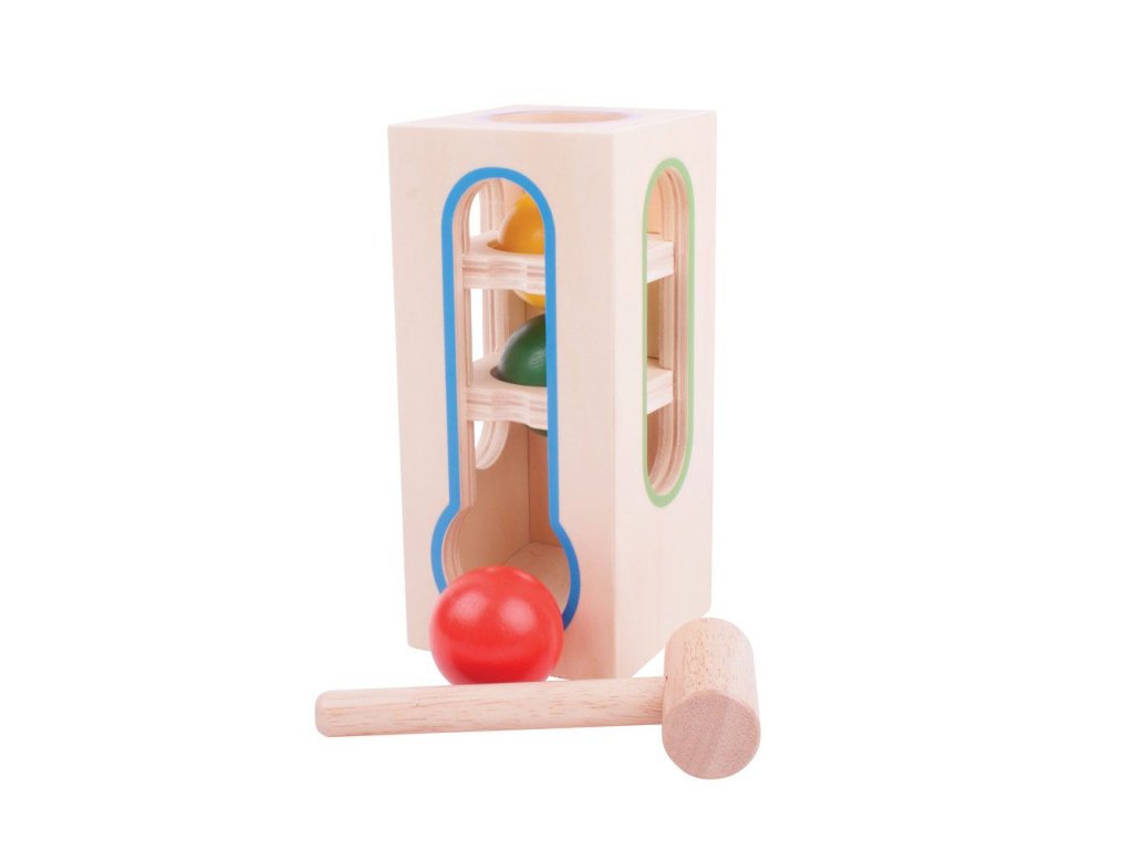 Tato jednoduchá dřevěná hračka slibuje hodiny zábavy při zatloukání. Každý barevný míček je sražen dolů do spodní části věže, po umístění zpět nahoru můžete začít zatloukat znovu! Práce s kladivem a manipulace s kuličkou pomůže s rozvojem jemné motoriky, koordinace ruka-oko a rozpoznáváním barev. Vyrobeno z kvalitních materiálů ze zodpovědných zdrojů. Vyhovuje současným evropským bezpečnostním normám. Hlavní vlastnosti: skládá se ze 4 částírozvíjí jemnou motoriku a koordinaci ruka-okopomáhá učit rozpoznávání barev