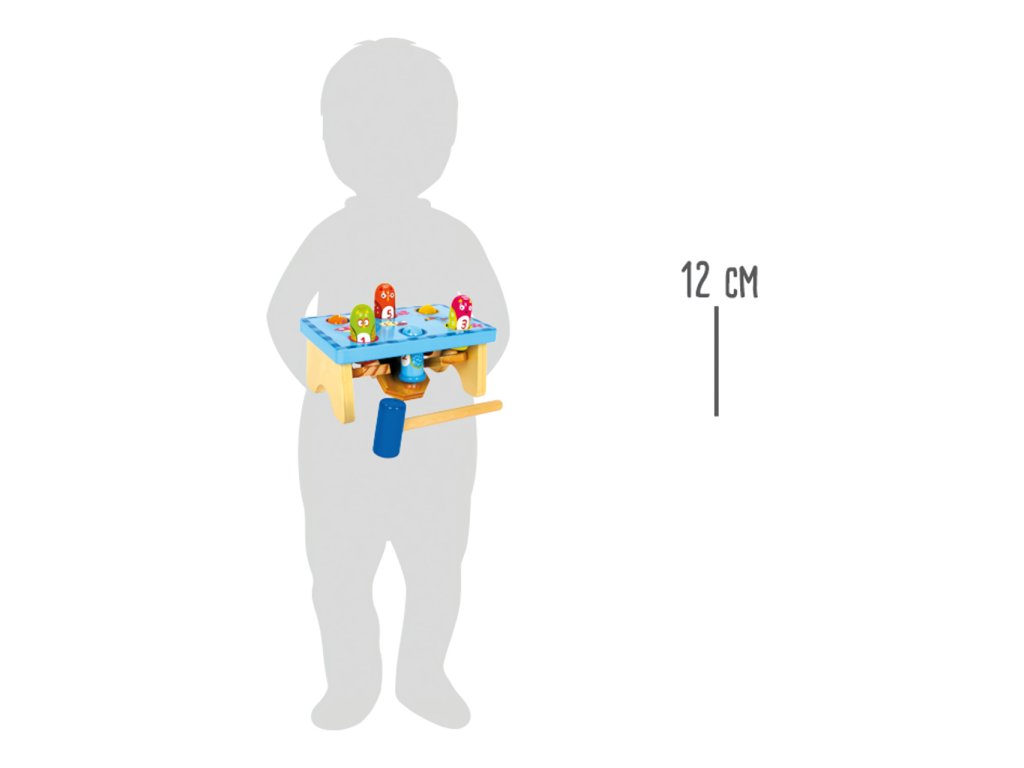 Poškozený obal. Nové zboží bez závad. Barevná zatloukací hra z masivního dřeva a překližky. Všeteční ptáci se na jedné straně zatloukají a na druhé už zase vykukují. Zábavný a hravý způsob, jak trénovat motoriku. Hlavní vlastnosti: dřevěná hračkatrénuje motoriku dětí